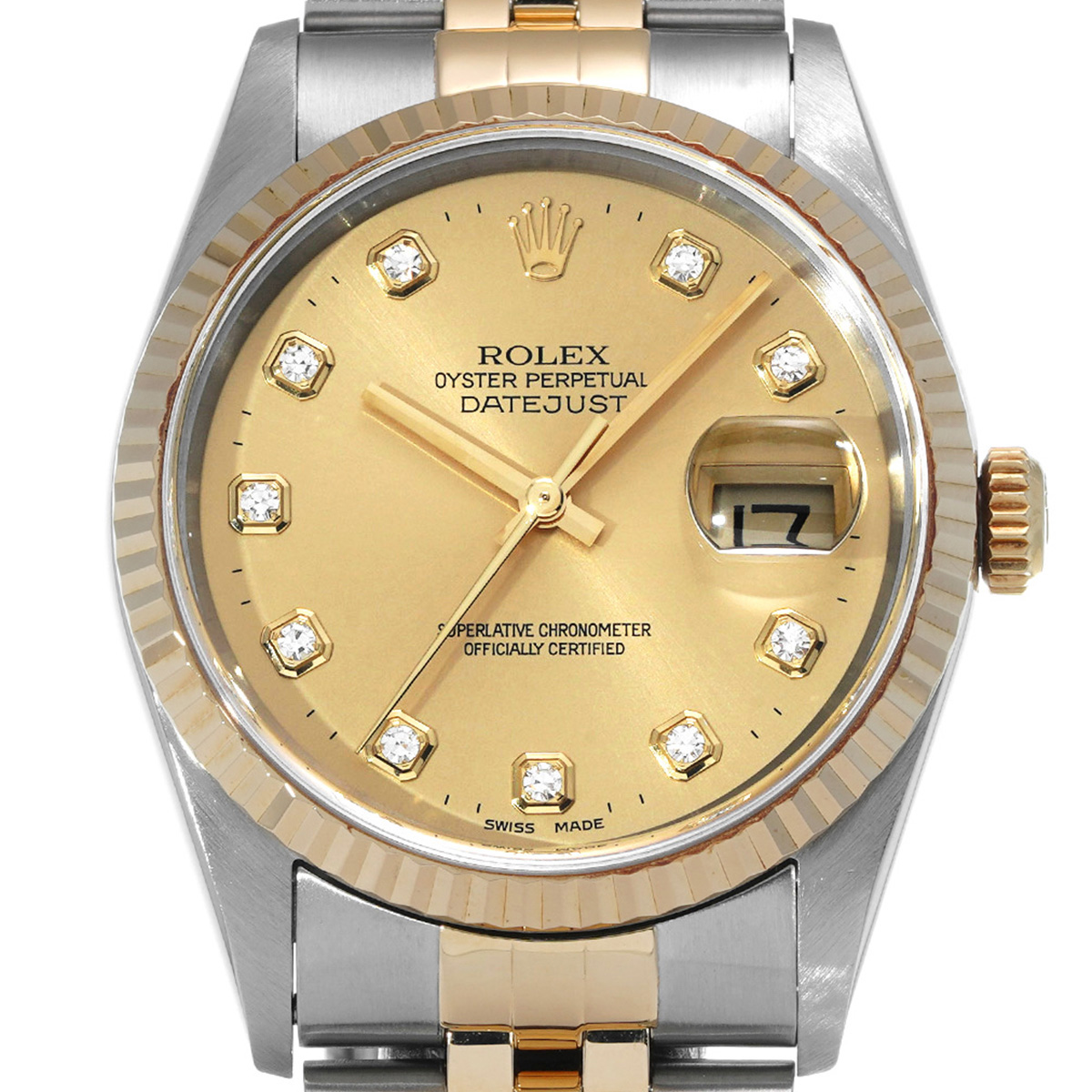ロレックス デイトジャスト 16233G シャンパン/ダイヤモンド メンズ 時計 【中古】【wristwatch】