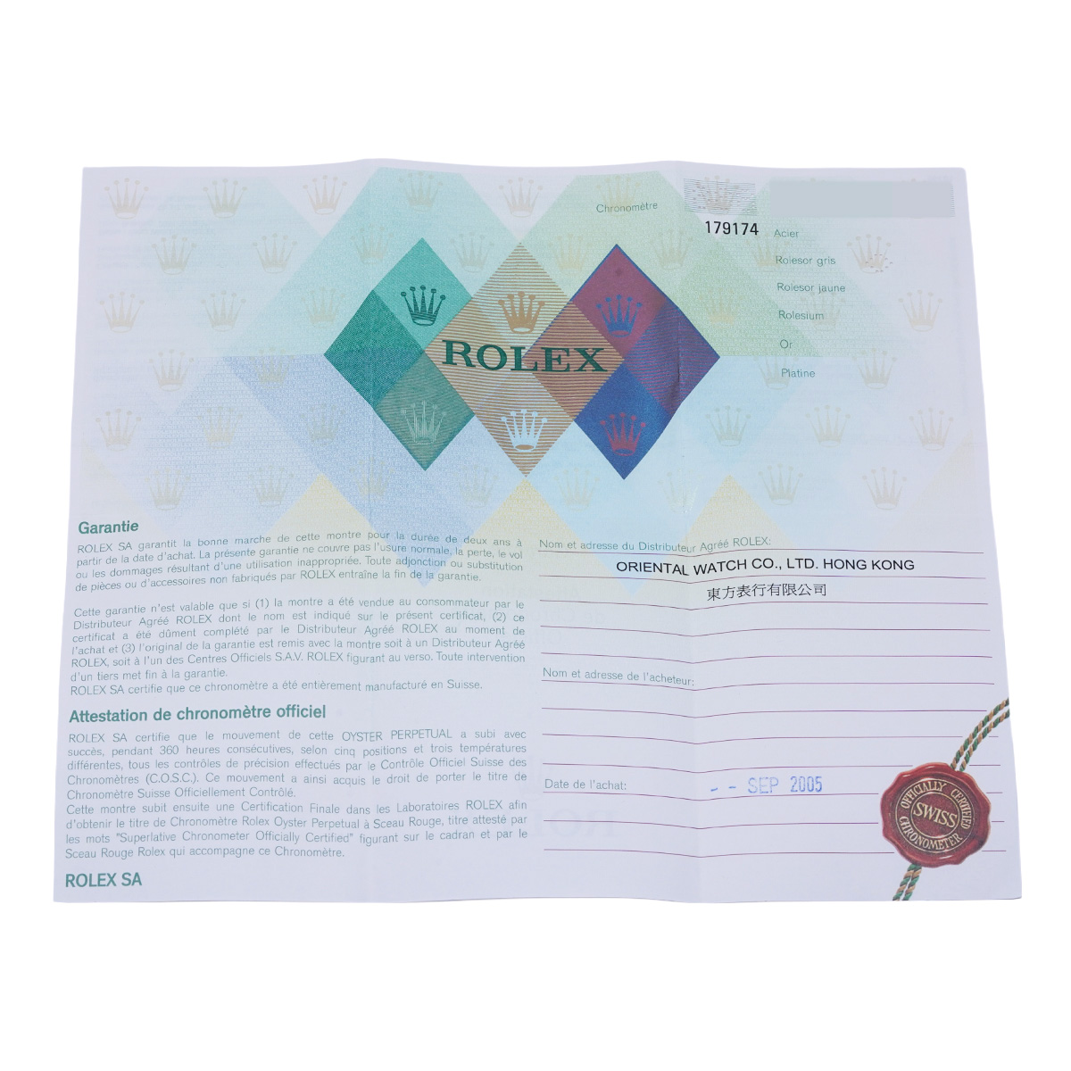- メーカー保証書( 2005年9月海外購入) / 内箱(ダメージ)