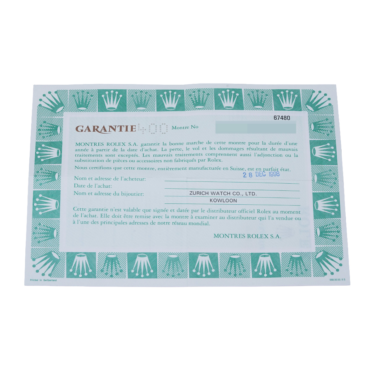 - 時計の当社保証