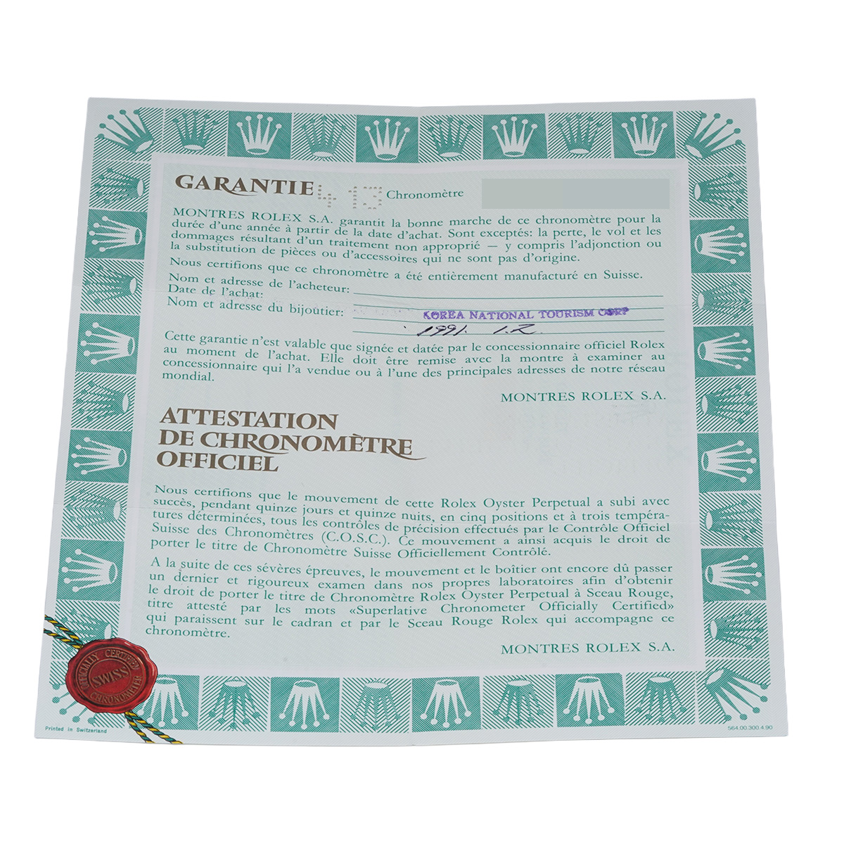- メーカー保証書( 1991年1月海外購入) / 内箱