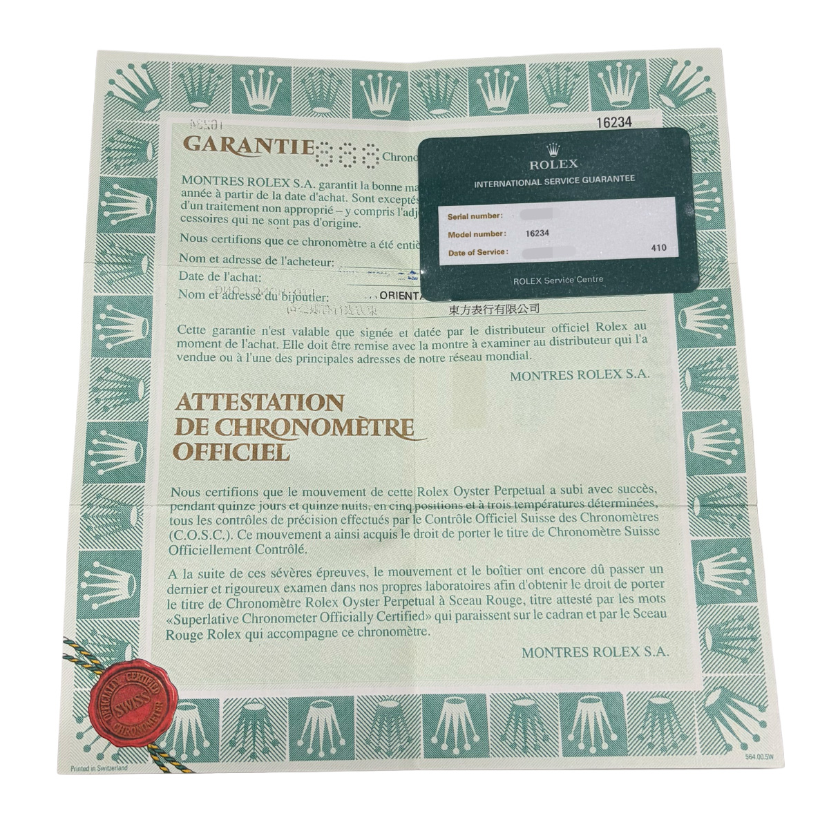 - メーカー保証書( 2002年1月海外購入) / メーカー箱 / 国際サービス保証書(2020年7月オーバーホール)
