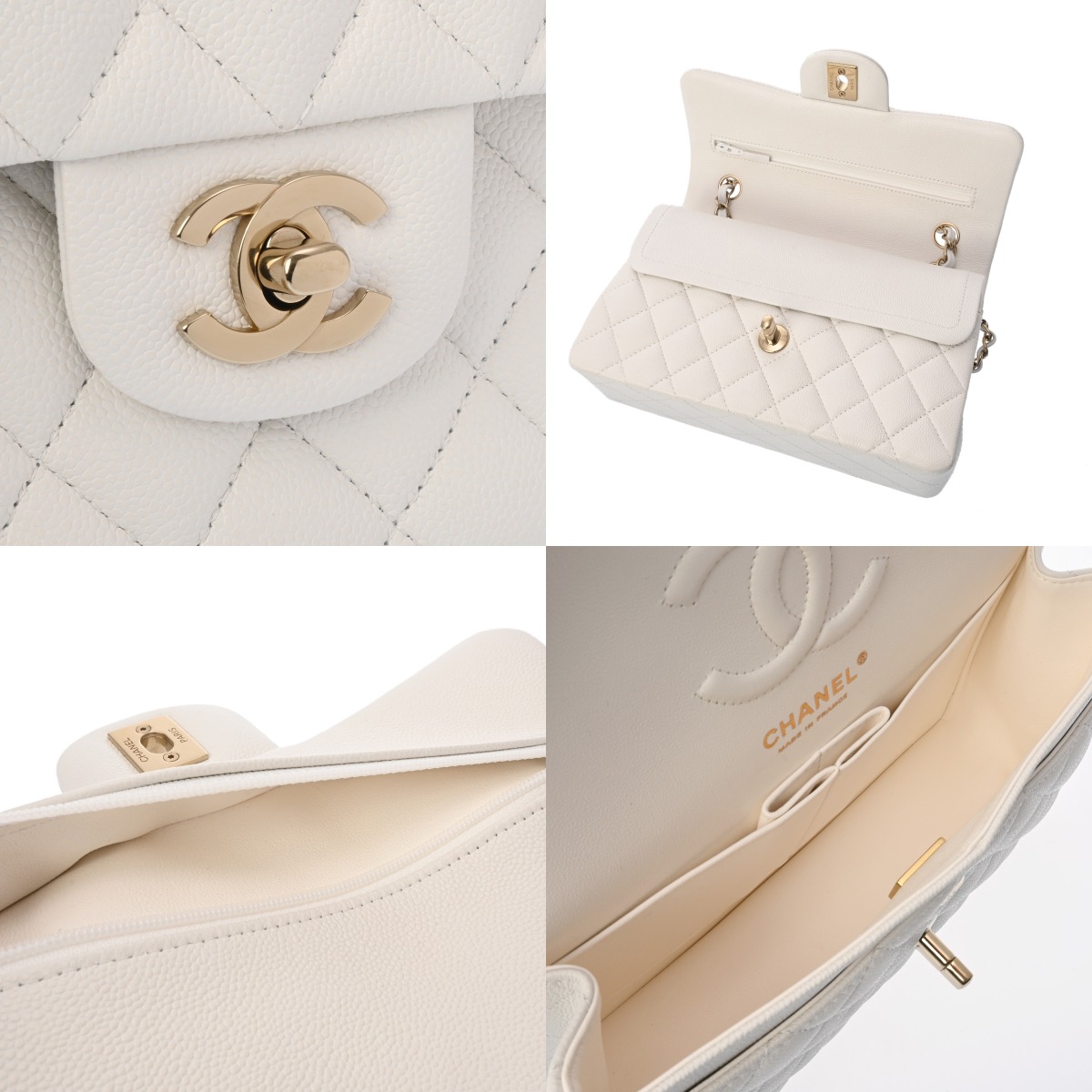 シャネル マトラッセ クラシック スモール ハンドバッグ 23cm ホワイト A01113 グレインドカーフスキン レディース バッグ 【中古】【bag】