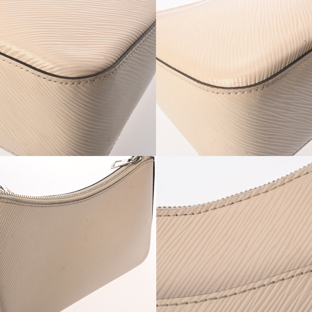 - 若干薄汚れやスレ、正面に少しインク染み、ショルダーにクセ、金具にくすみやスレなど少々使用感がございます。