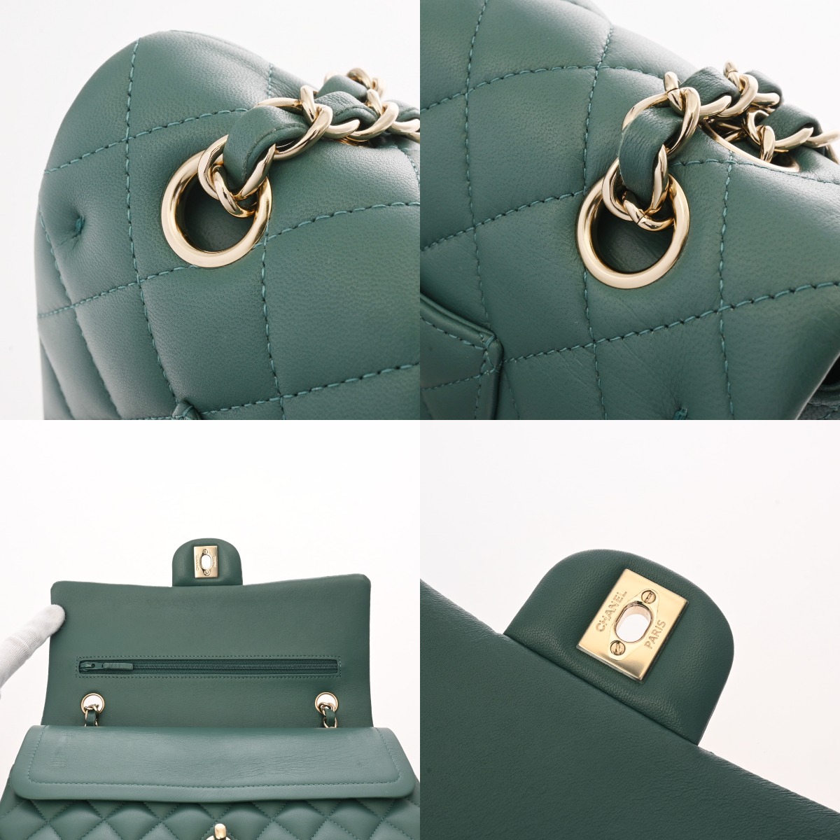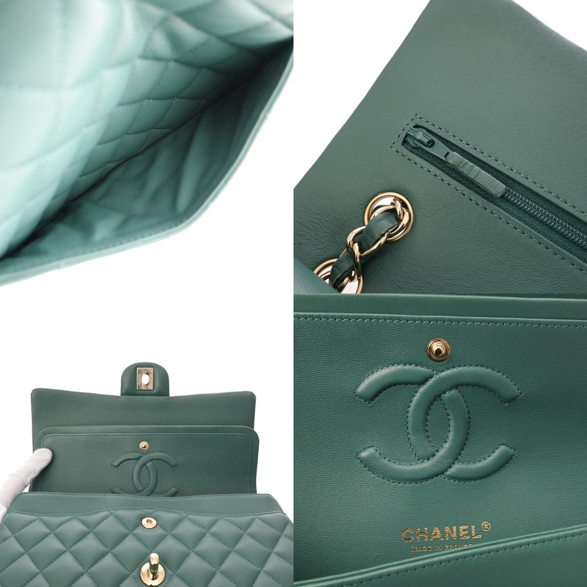 シャネル マトラッセ クラシックハンドバッグ 25cm グリーン A01112 ラムスキン レディース バッグ 【中古】【bag】