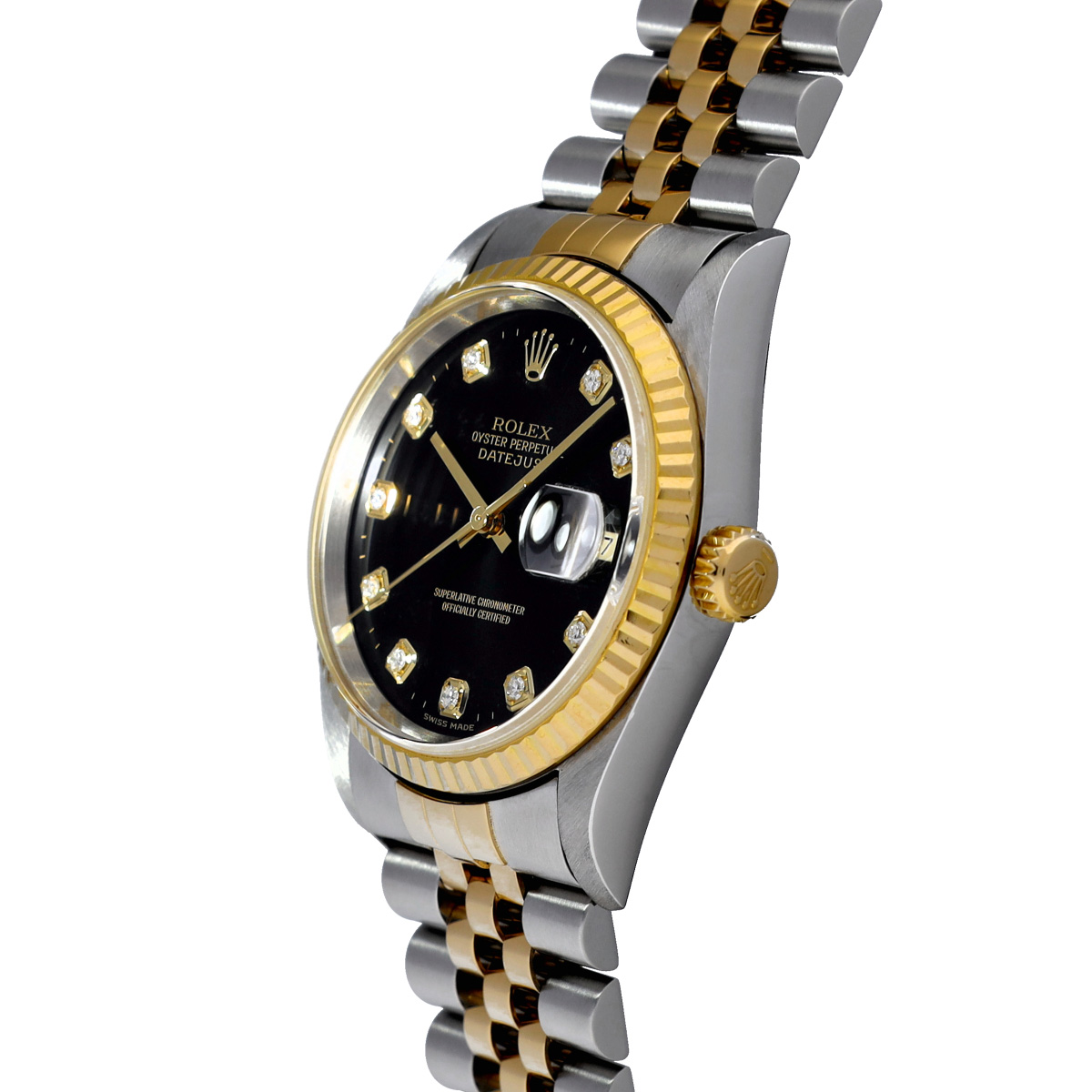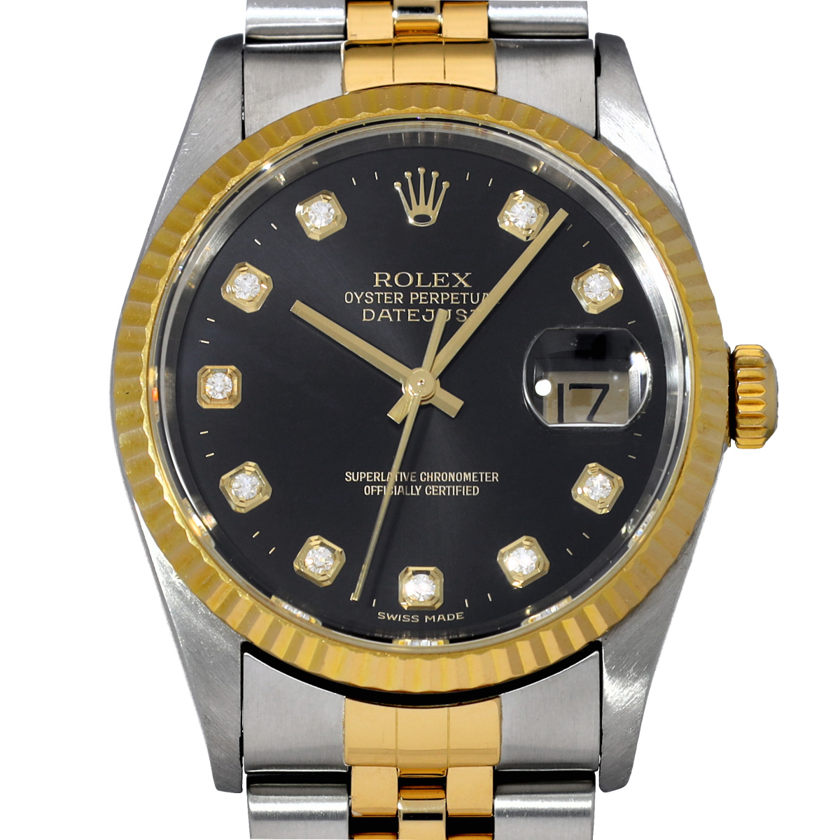ロレックス デイトジャスト 16233G ブラック/ダイヤモンド メンズ 時計 【中古】【wristwatch】