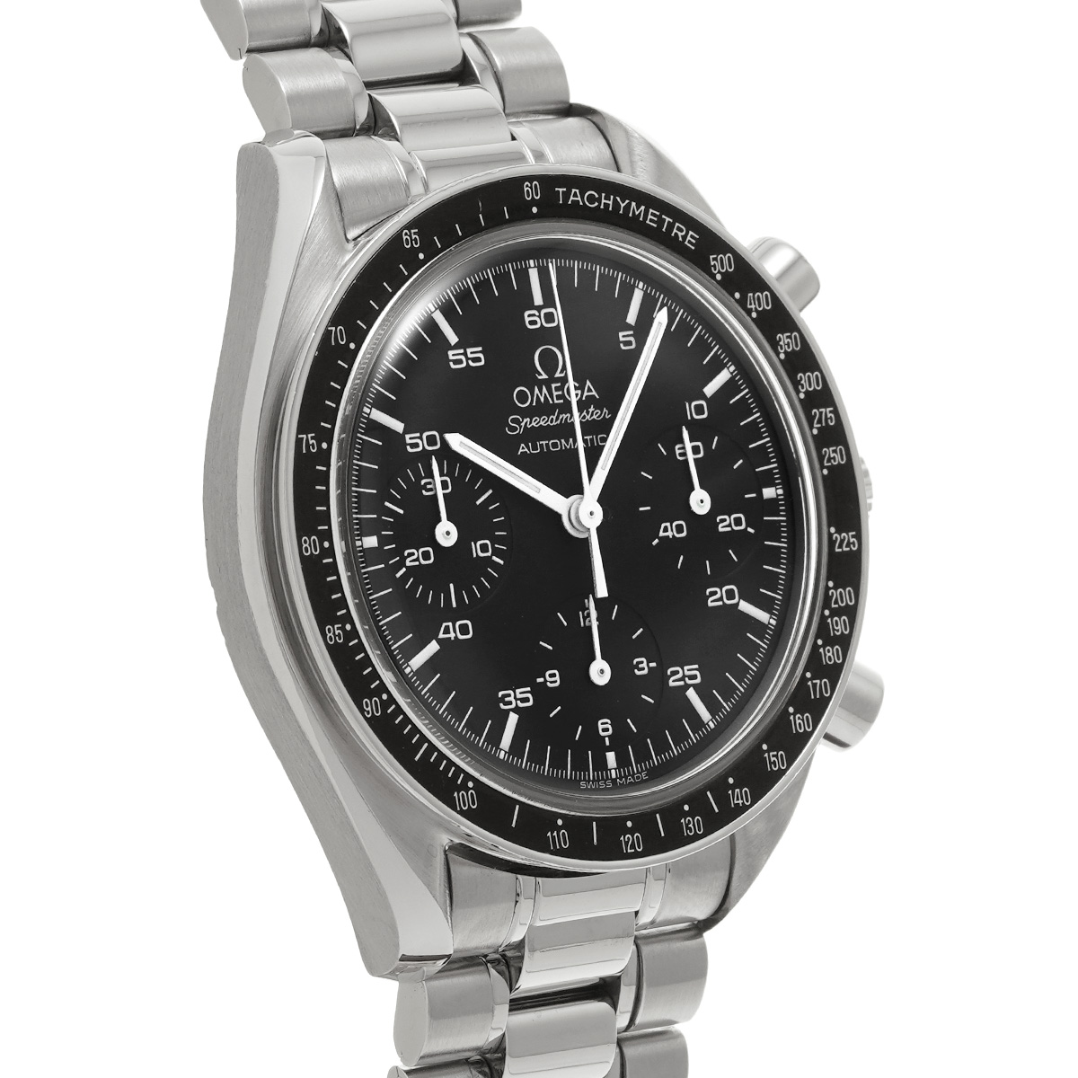 コメントこのスピードマスター リデュースドとも呼ばれるモデルは、オメガの代表的な時計であるスピードマスター プロフェッショナルのツールとして研ぎ澄まされた精悍さはそのままに、ケース径を39ミリに縮小して腕上での収まりを改善すると共に、自動巻きムーブメントの採用によって利便性を向上させることで、より多くの人々の日常に寄り添える時計を目指したものです。
