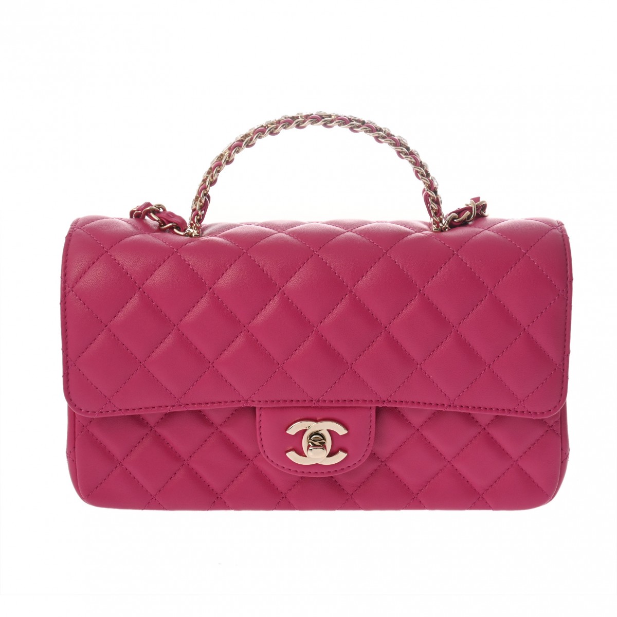 シャネル マトラッセ トップハンドル フラップバッグ ピンク AS4141 ラムスキン/クリスタル レディース バッグ 【中古】【bag】