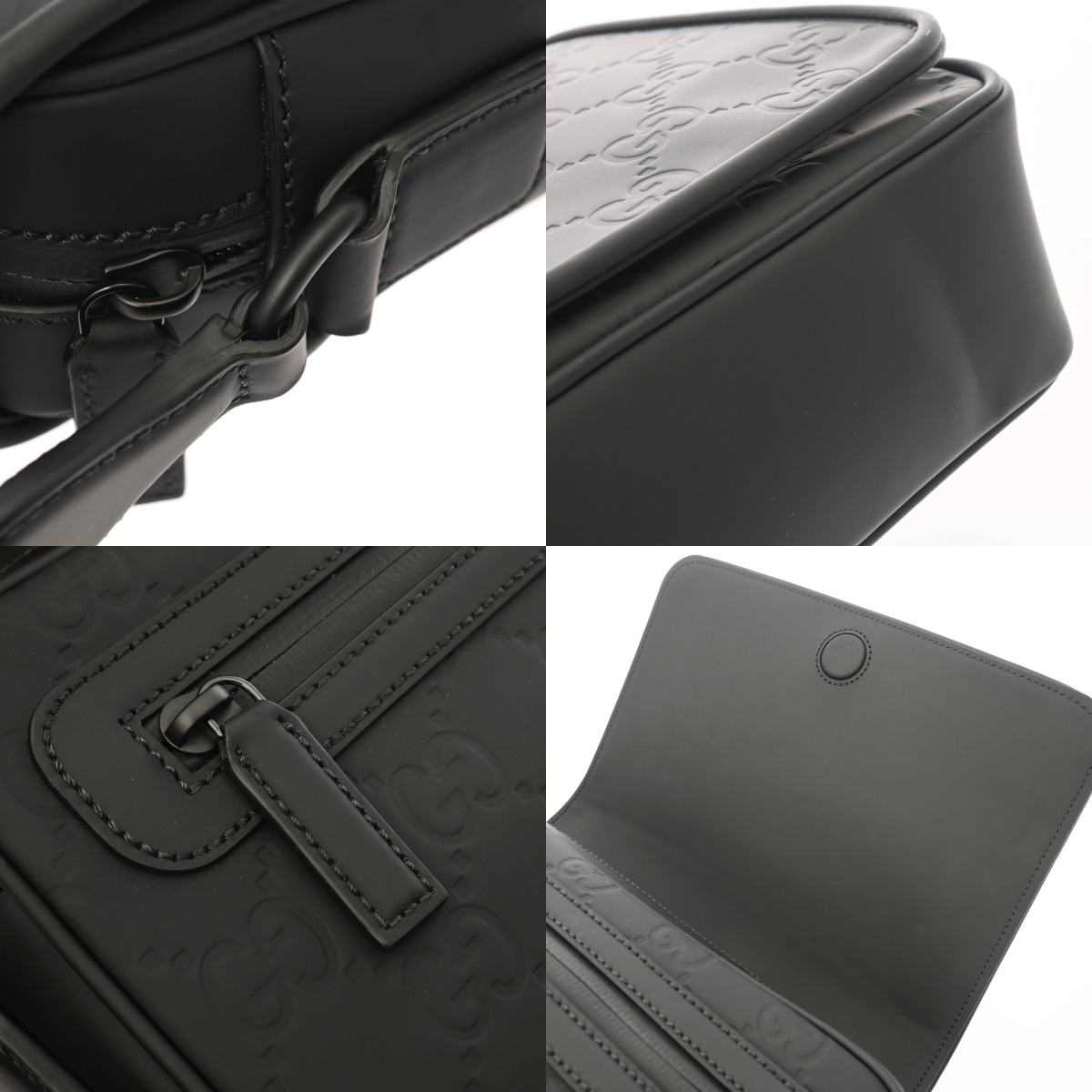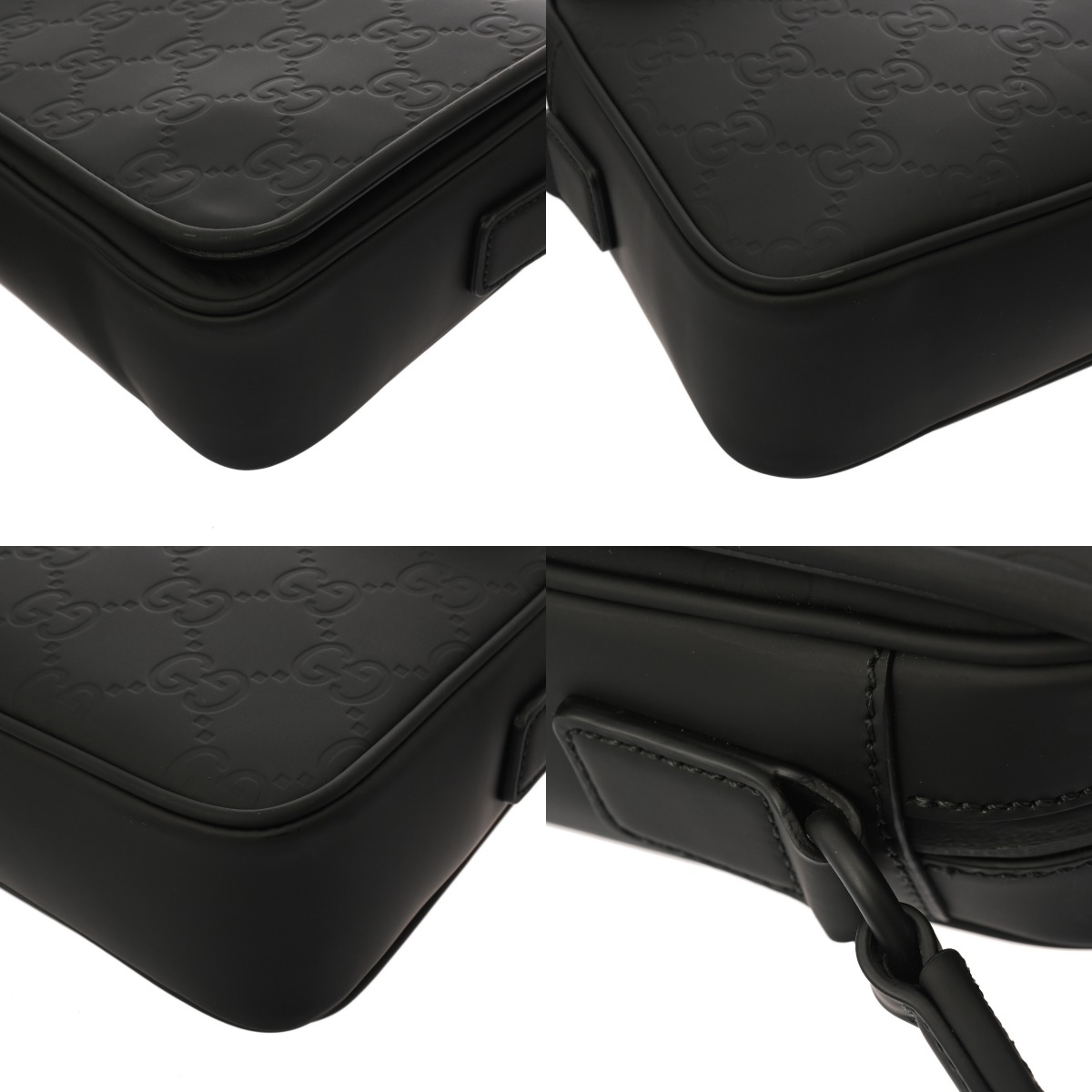 グッチ ミディアム メッセンジャーバッグ ブラック 775097 520981 GGラバーエフェクトレザー メンズ バッグ 【中古】【bag】
