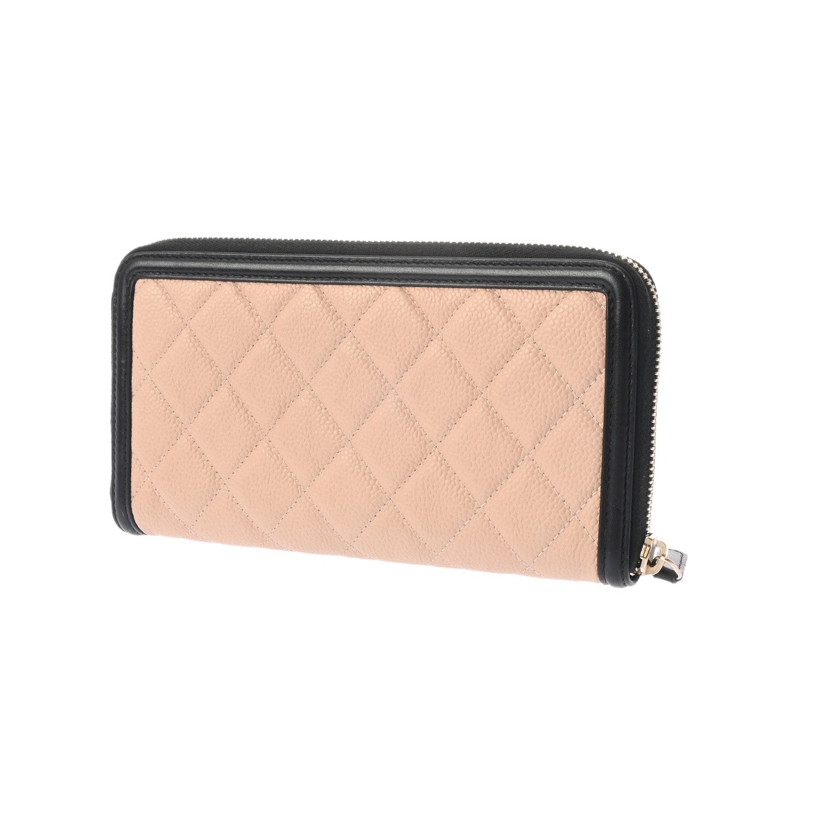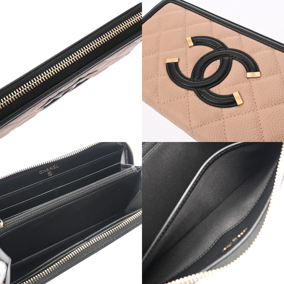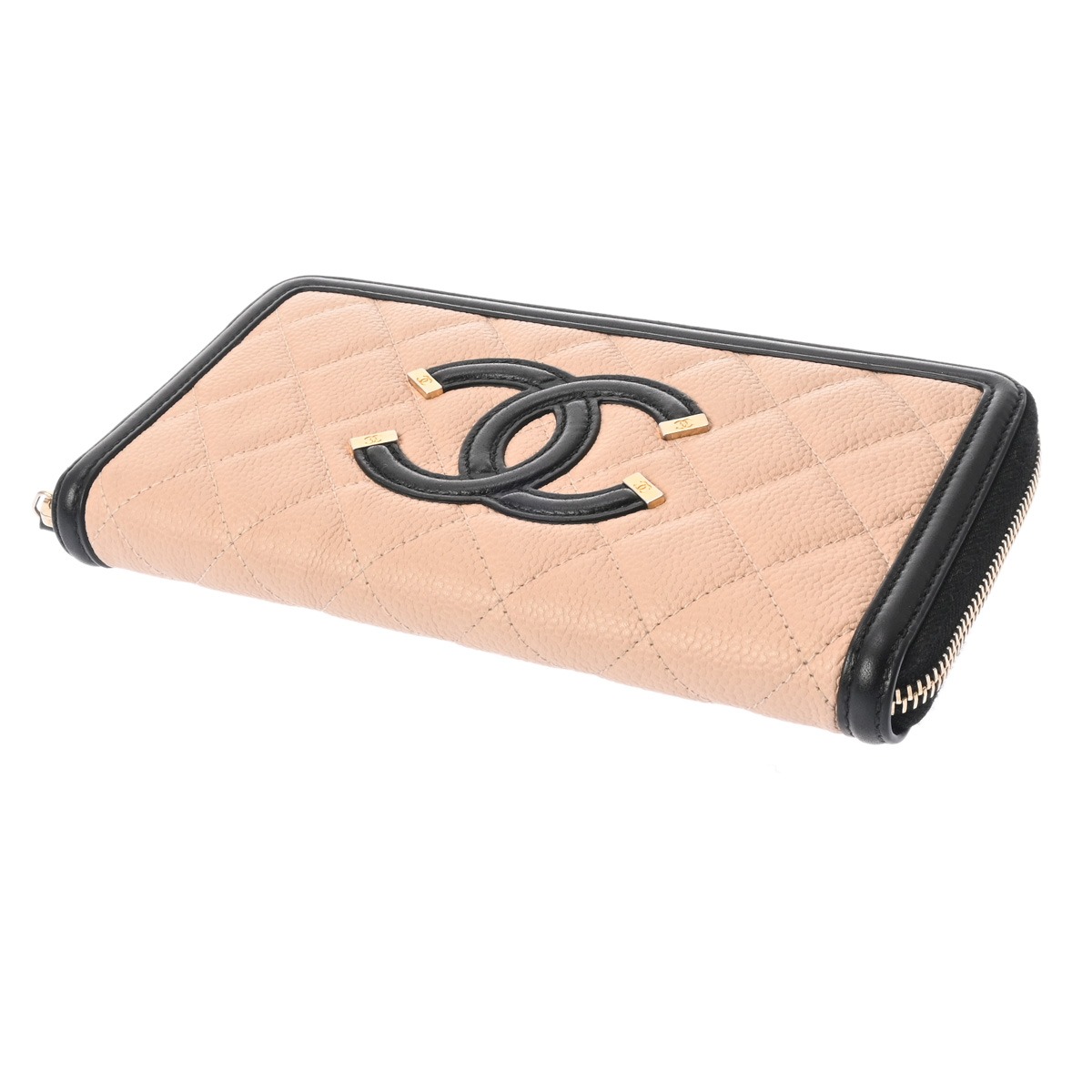 シャネル CCフィグリー クラシック ロング ジップウォレット ベージュ/ブラック AP0242 キャビアスキン レディース 財布 【中古】【purse】