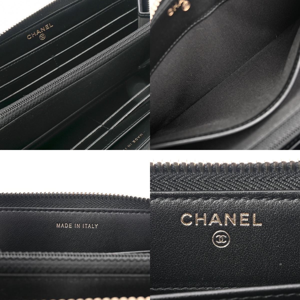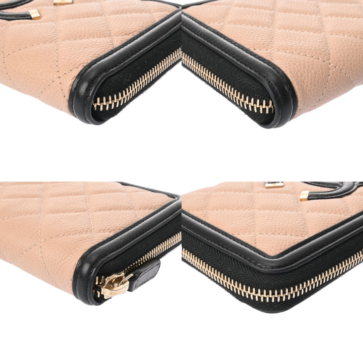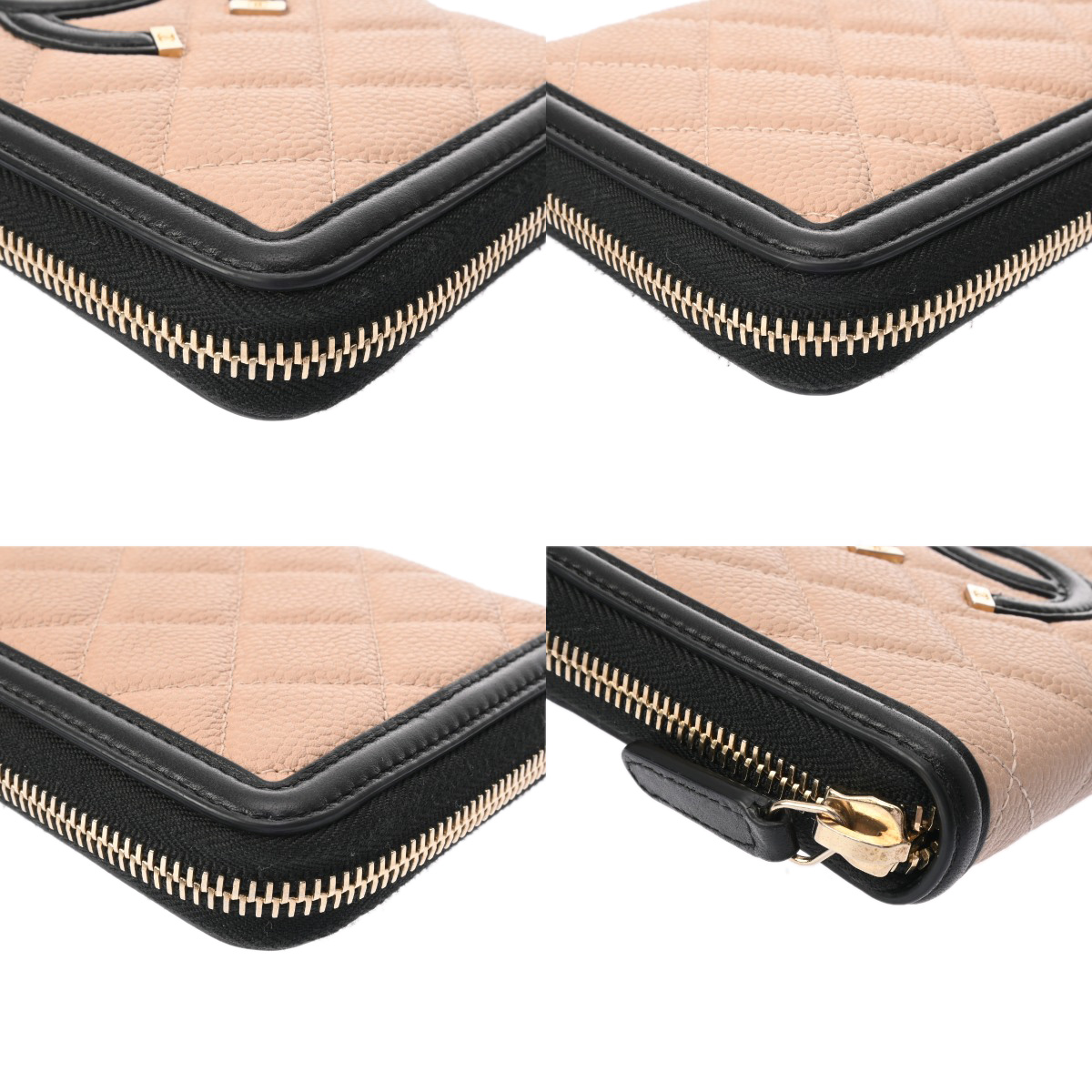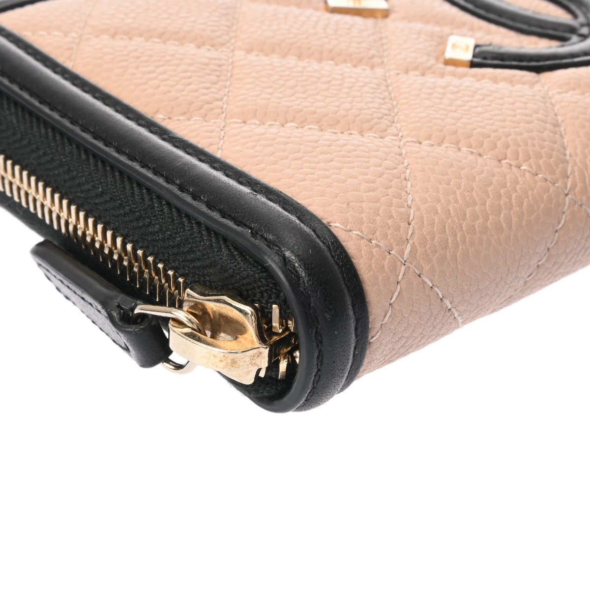 シャネル CCフィグリー クラシック ロング ジップウォレット ベージュ/ブラック AP0242 キャビアスキン レディース 財布 【中古】【purse】