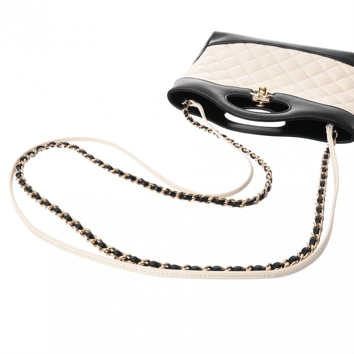 シャネル CHANEL31 ミニ ショッピング バッグ ホワイト/ブラック AS4133 シャイニーラムスキン レディース バッグ 【中古】【bag】