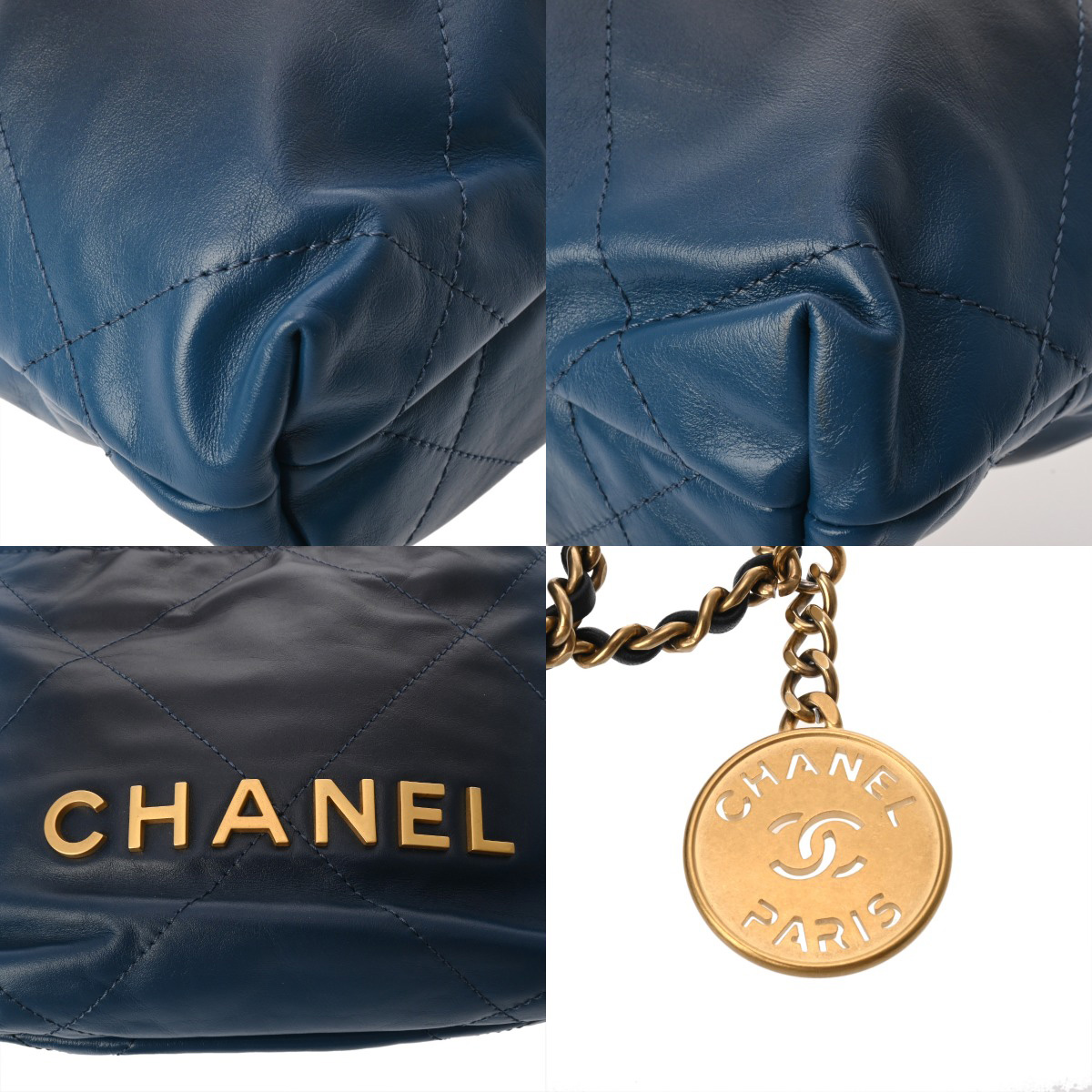 シャネル ミニ ハンドバッグ CHANEL22 ブルーグラデーション AS3980 シャイニーカーフスキン レディース バッグ 【中古】【bag】