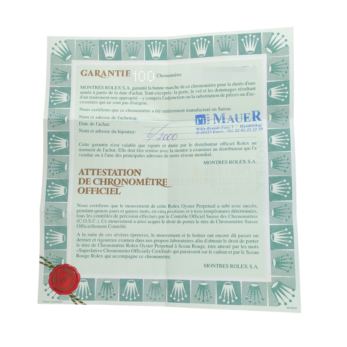 - メーカー保証書( 2000年6月海外購入) / タグ
