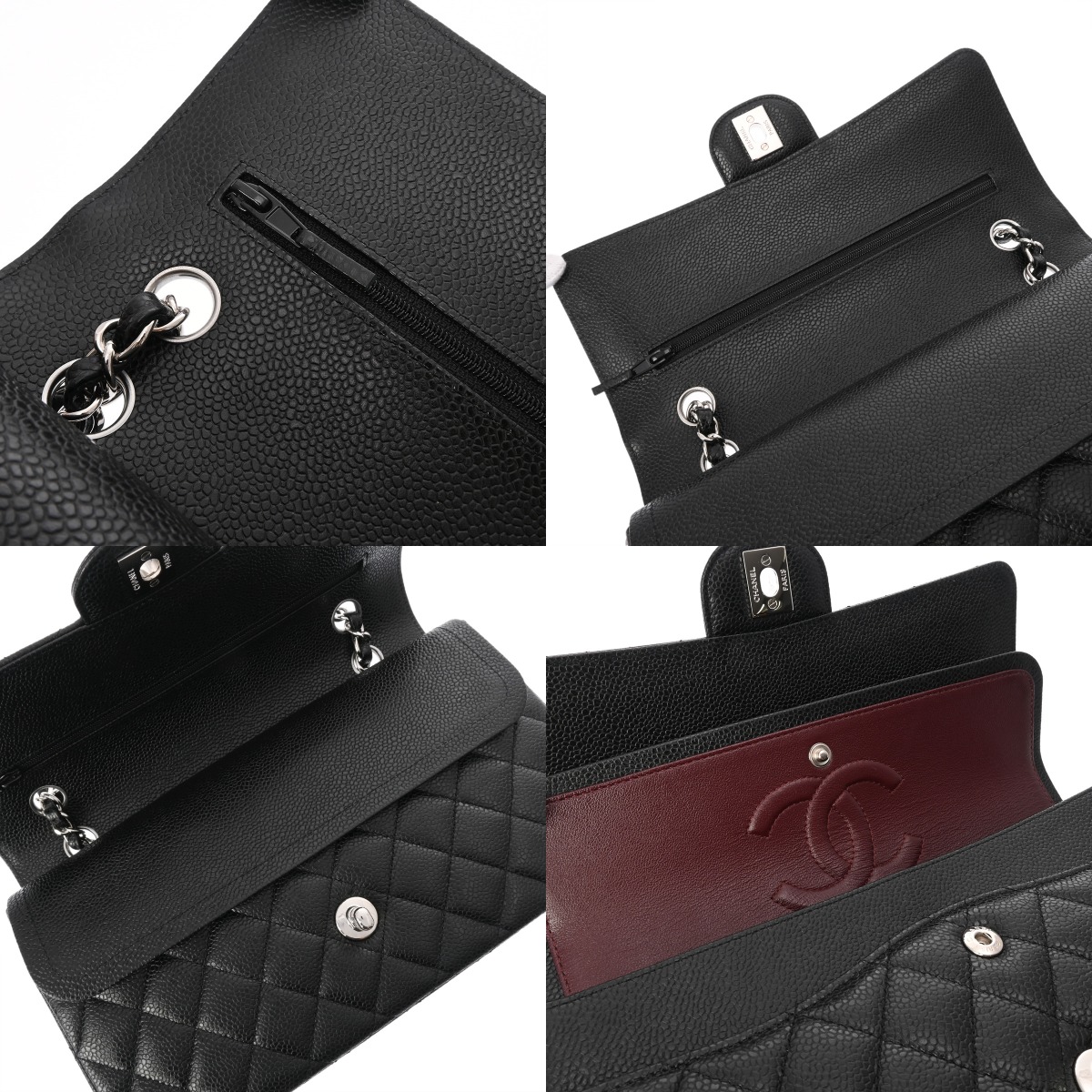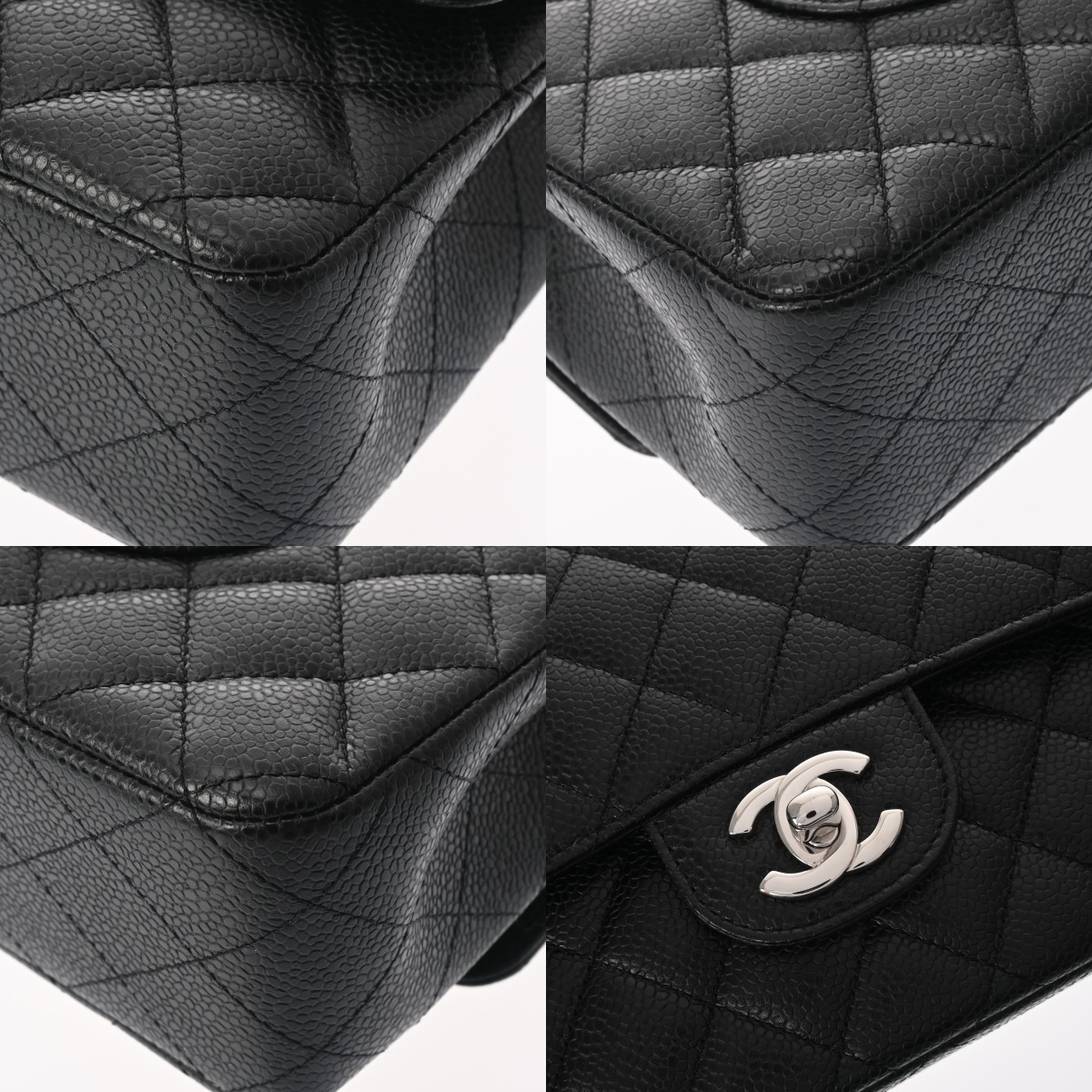 シャネル マトラッセ Wフラップ Wチェーンショルダー 25cm ブラック A01112 キャビアスキン レディース バッグ 【中古】【bag】