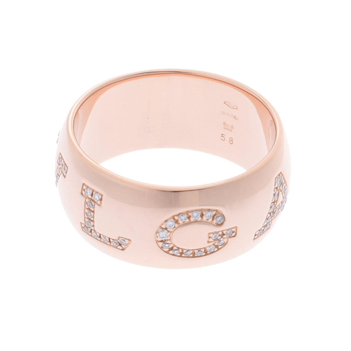 ブルガリ モノロゴリング #58 デミパヴェ ゴールド 343356 K18ピンクゴールド PG レディース ジュエリー 【中古】【jewelry】