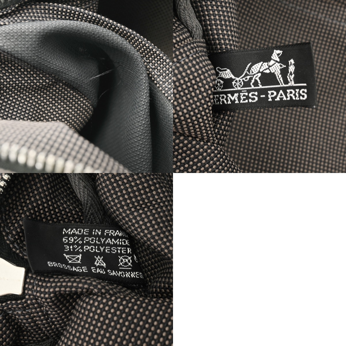 - たたみクセ、薄汚れやスレ、若干の毛羽立ちや繊維の出、金具に薄いスレやくすみ、持ち手に使用感が少々ございます。