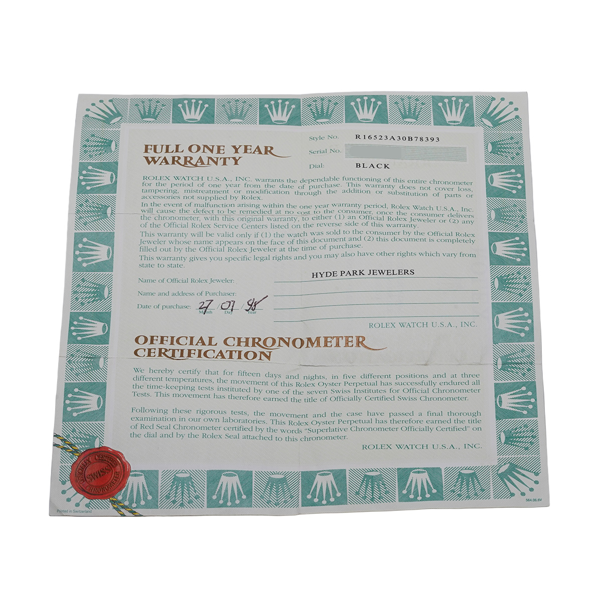 - メーカー保証書( 1998年7月海外購入)