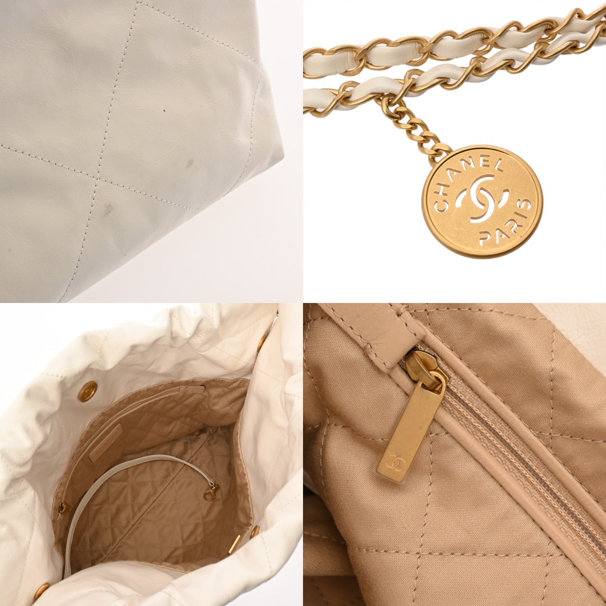 シャネル スモール ハンドバッグ CHANEL22 ホワイト AS3260 シャイニーカーフスキン レディース バッグ 【中古】【bag】