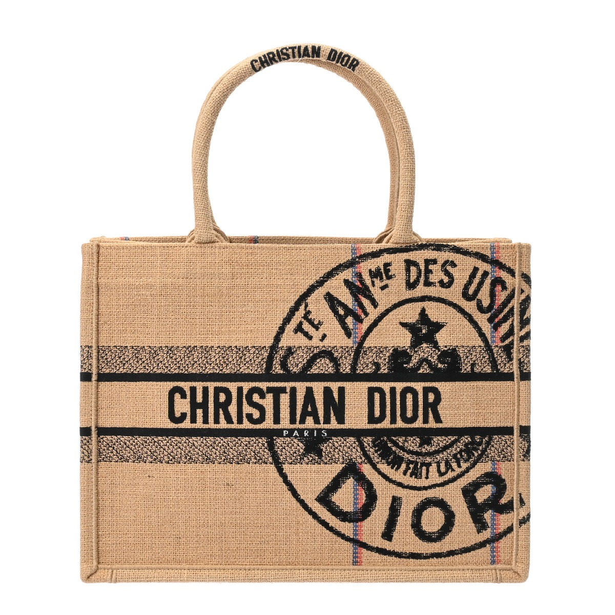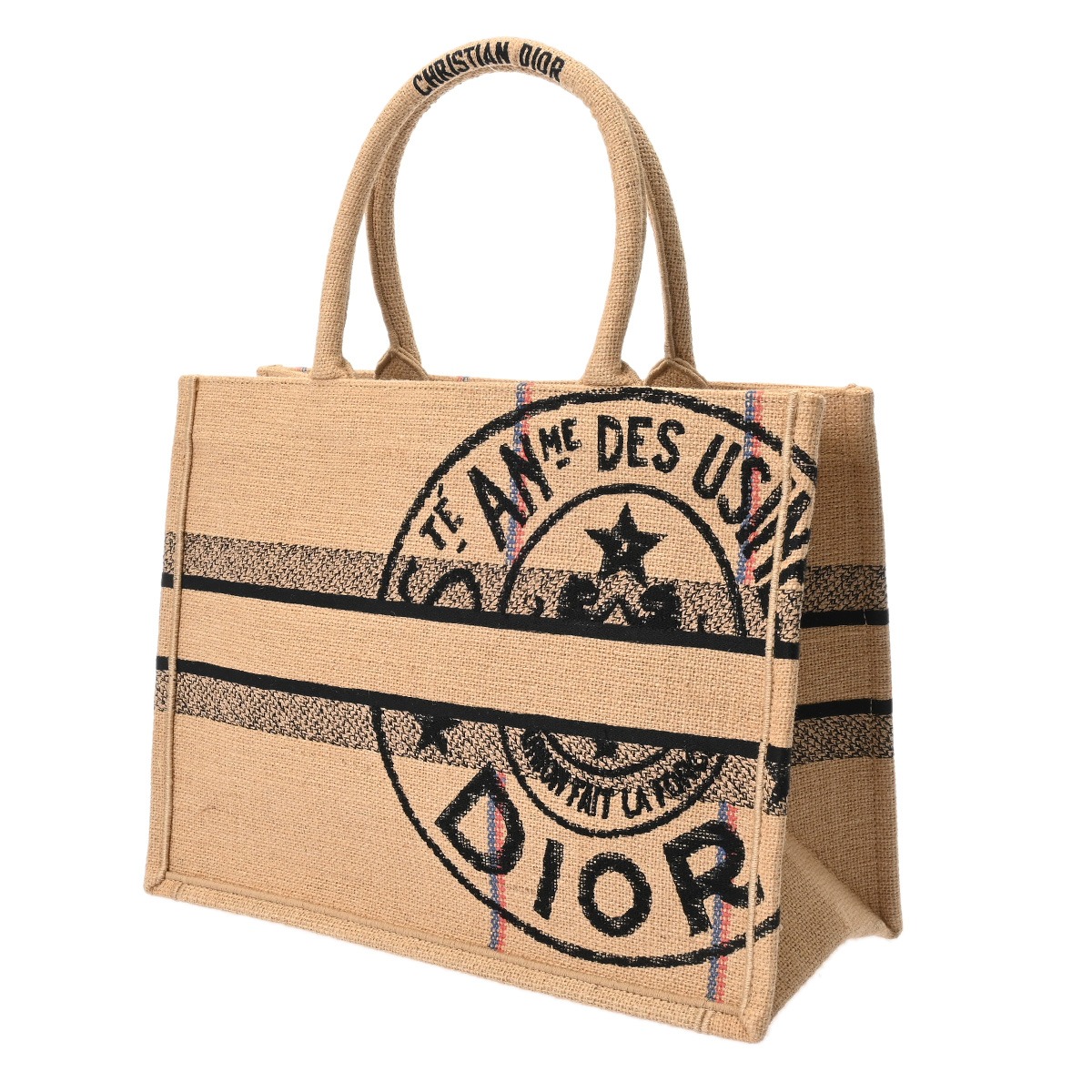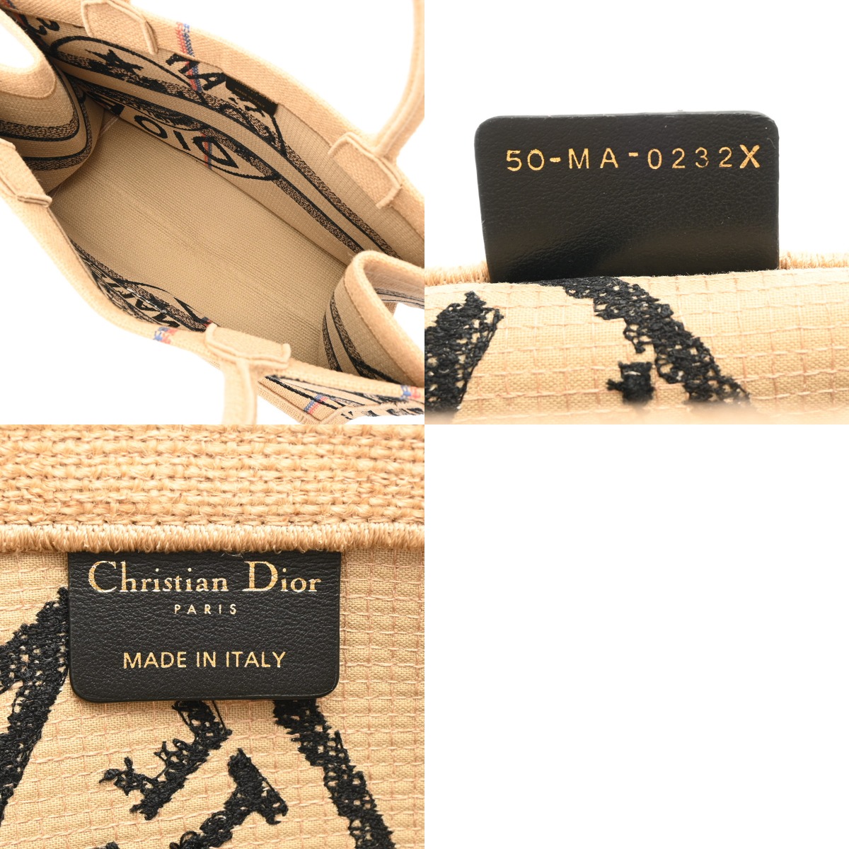 ディオール BOOK TOTEバッグ ミディアム ベージュ/ブラック M1296ZRUW ラフィア レディース バッグ 【中古】【bag】