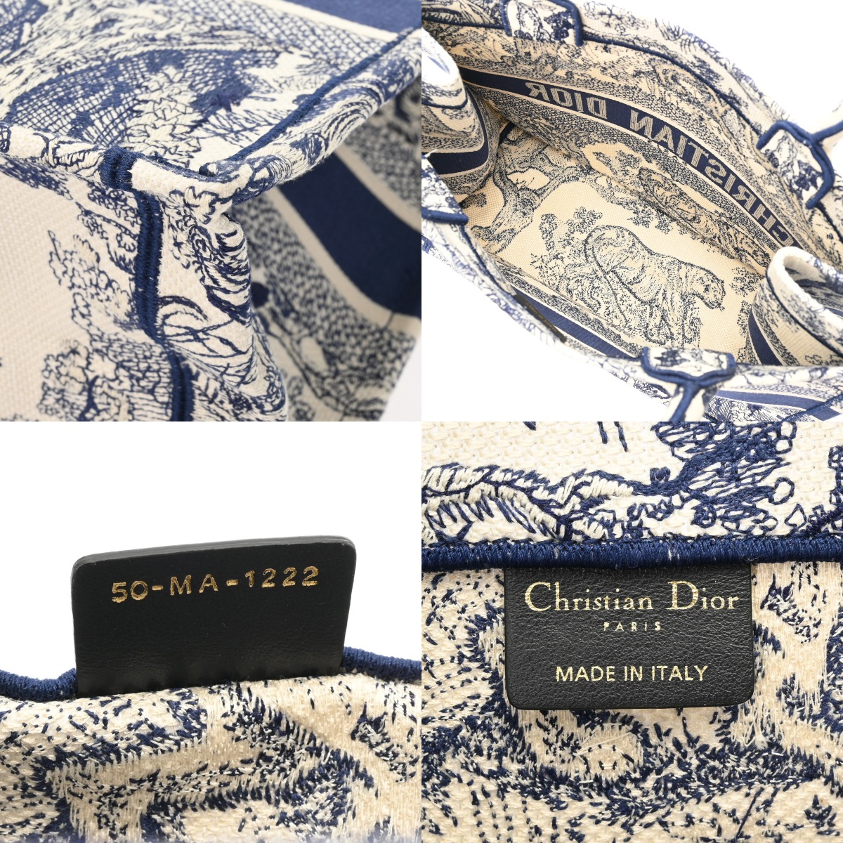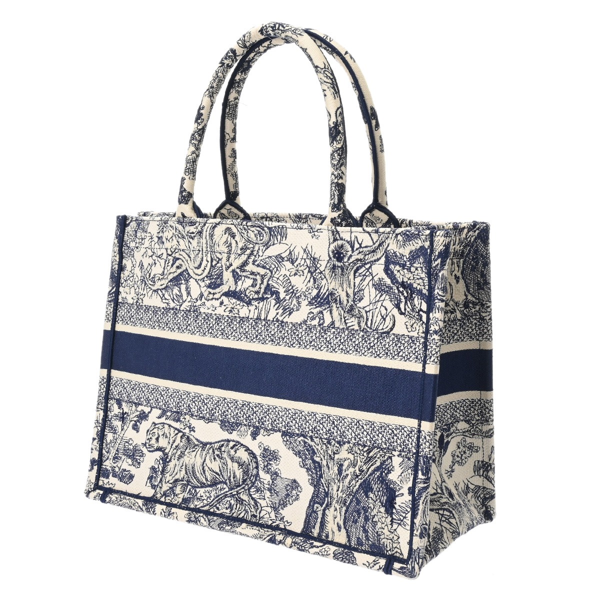 ディオール Book Toteバッグ ミディアム トワルドゥジュイ エンブロイダリー エクリュホワイト/ブルー M1296ZTDT_M341 キャンバス レディース バッグ 【中古】【bag】