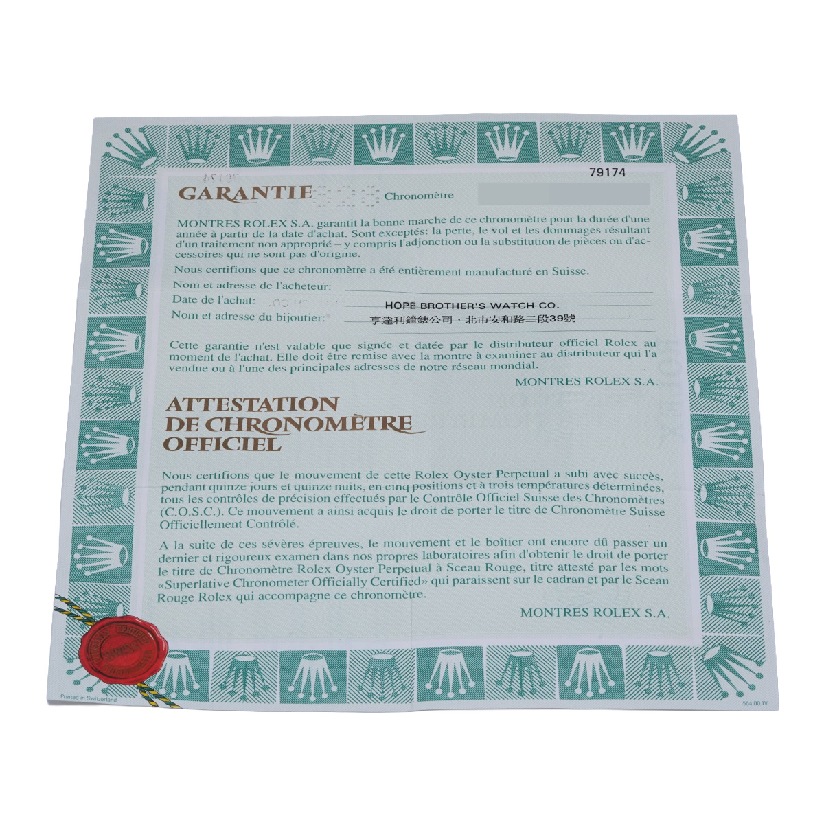- 時計の当社保証