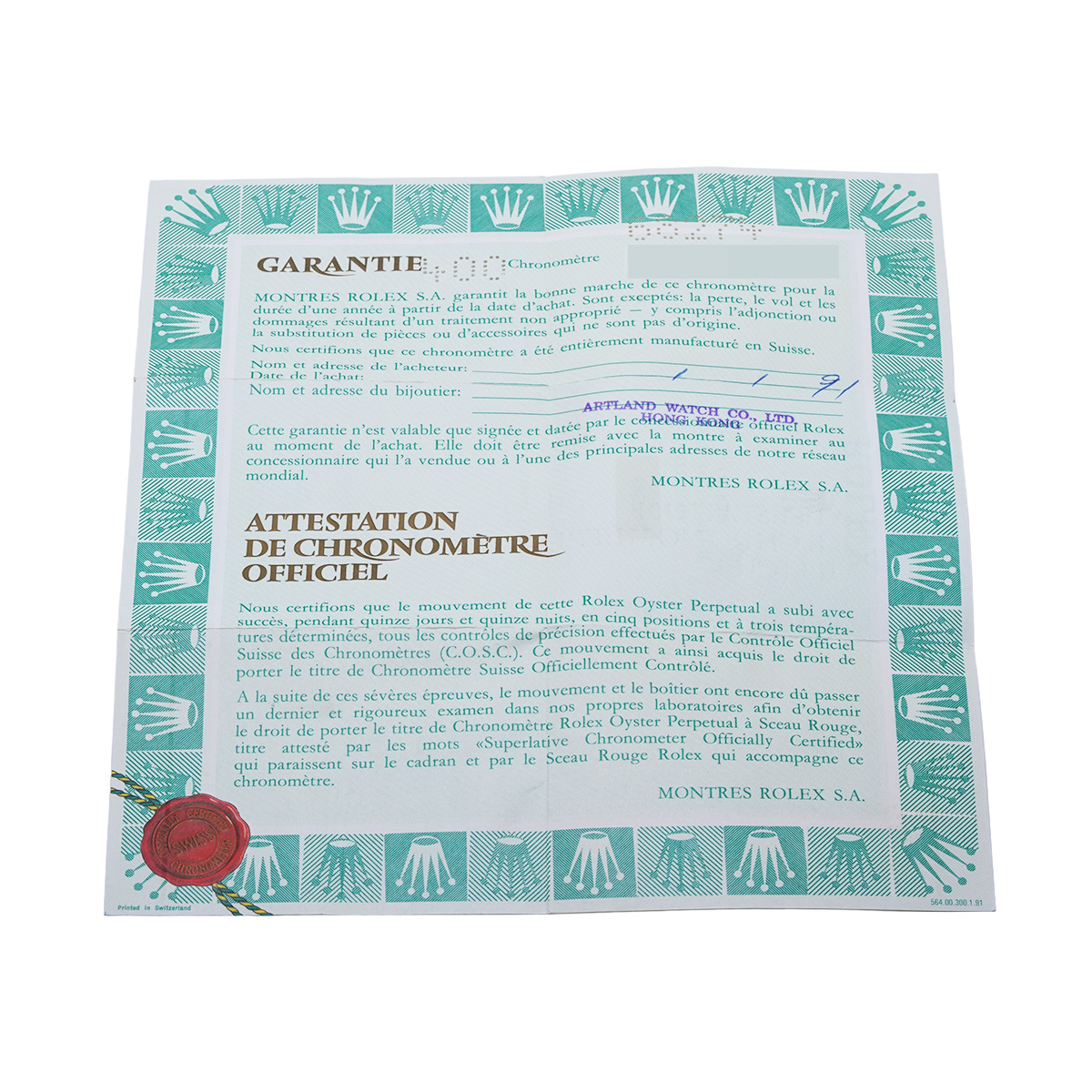 - メーカー保証書( 1991年1月海外購入) / メーカー箱/タグ