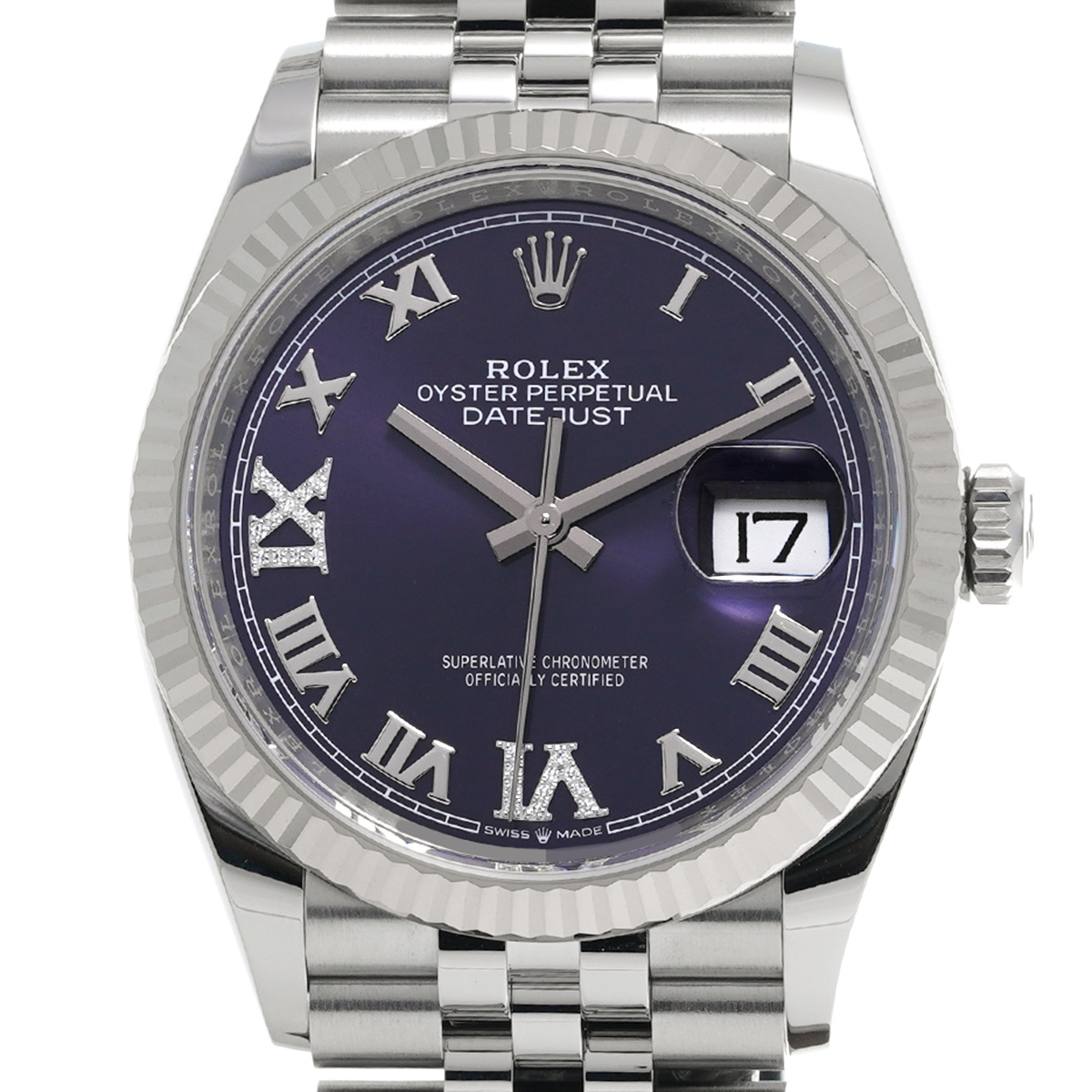 ロレックス デイトジャスト 36 126234 オーベルジーヌ/ダイヤモンド メンズ 時計 【中古】【wristwatch】