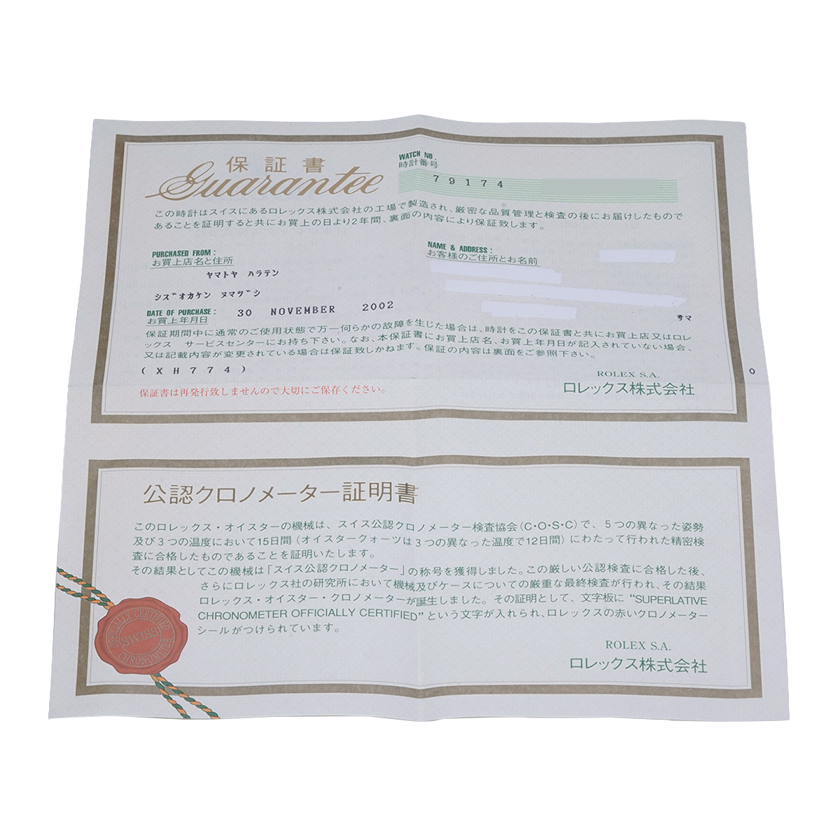 - 時計の当社保証
