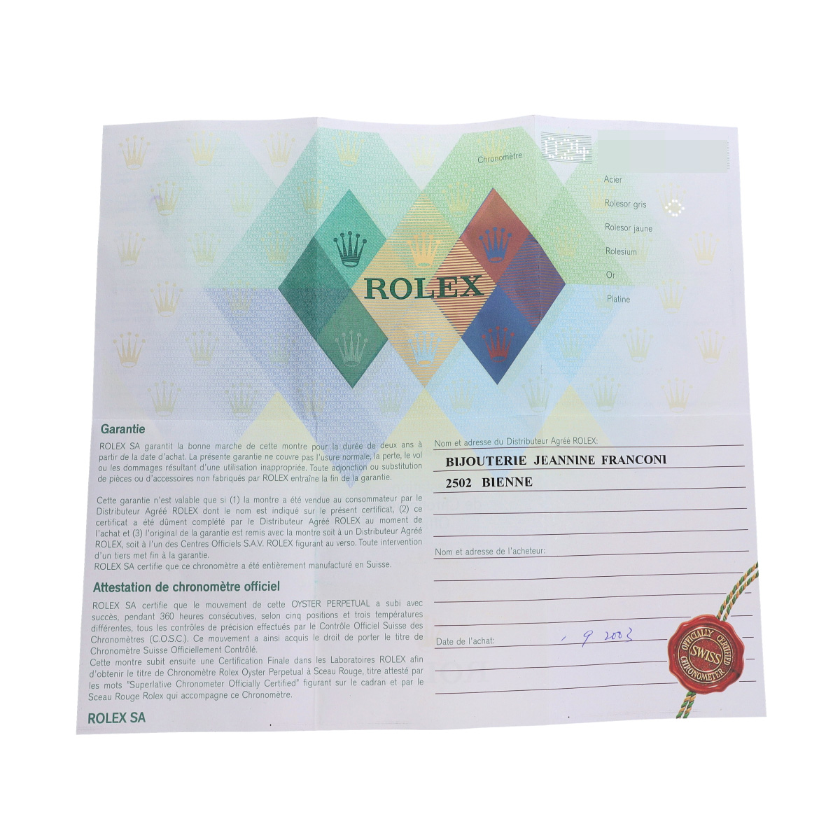 - メーカー保証書( 2003年9月海外購入)