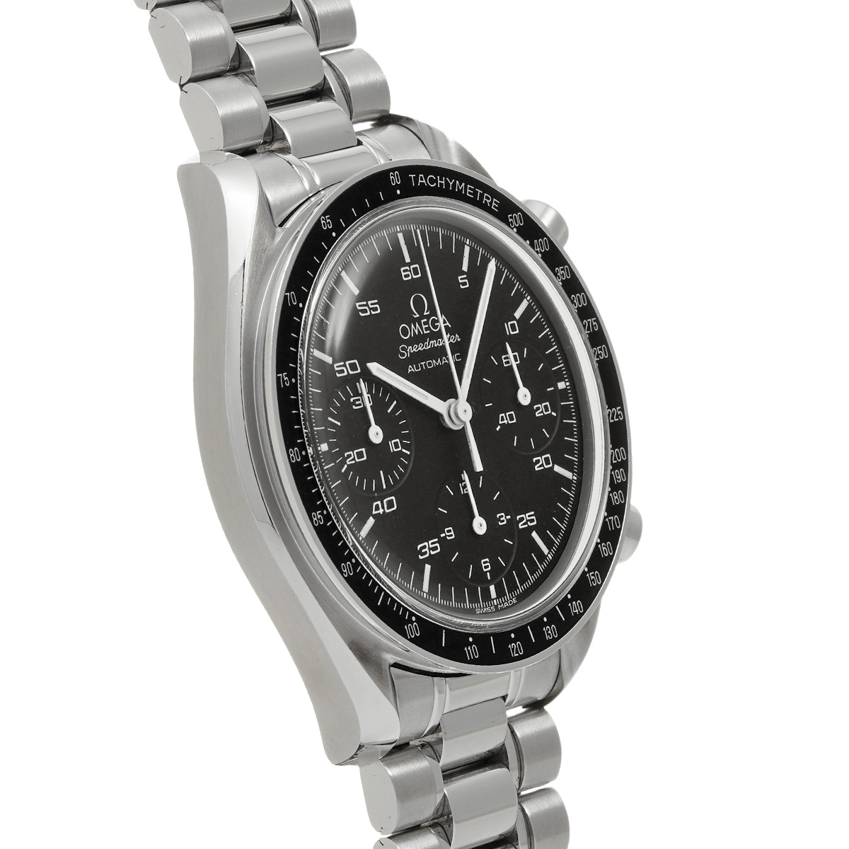 コメントこのスピードマスター リデュースドとも呼ばれるモデルは、オメガの代表的な時計であるスピードマスター プロフェッショナルのツールとして研ぎ澄まされた精悍さはそのままに、ケース径を39ミリに縮小して腕上での収まりを改善すると共に、自動巻きムーブメントの採用によって利便性を向上させることで、より多くの人々の日常に寄り添える時計を目指したものです。