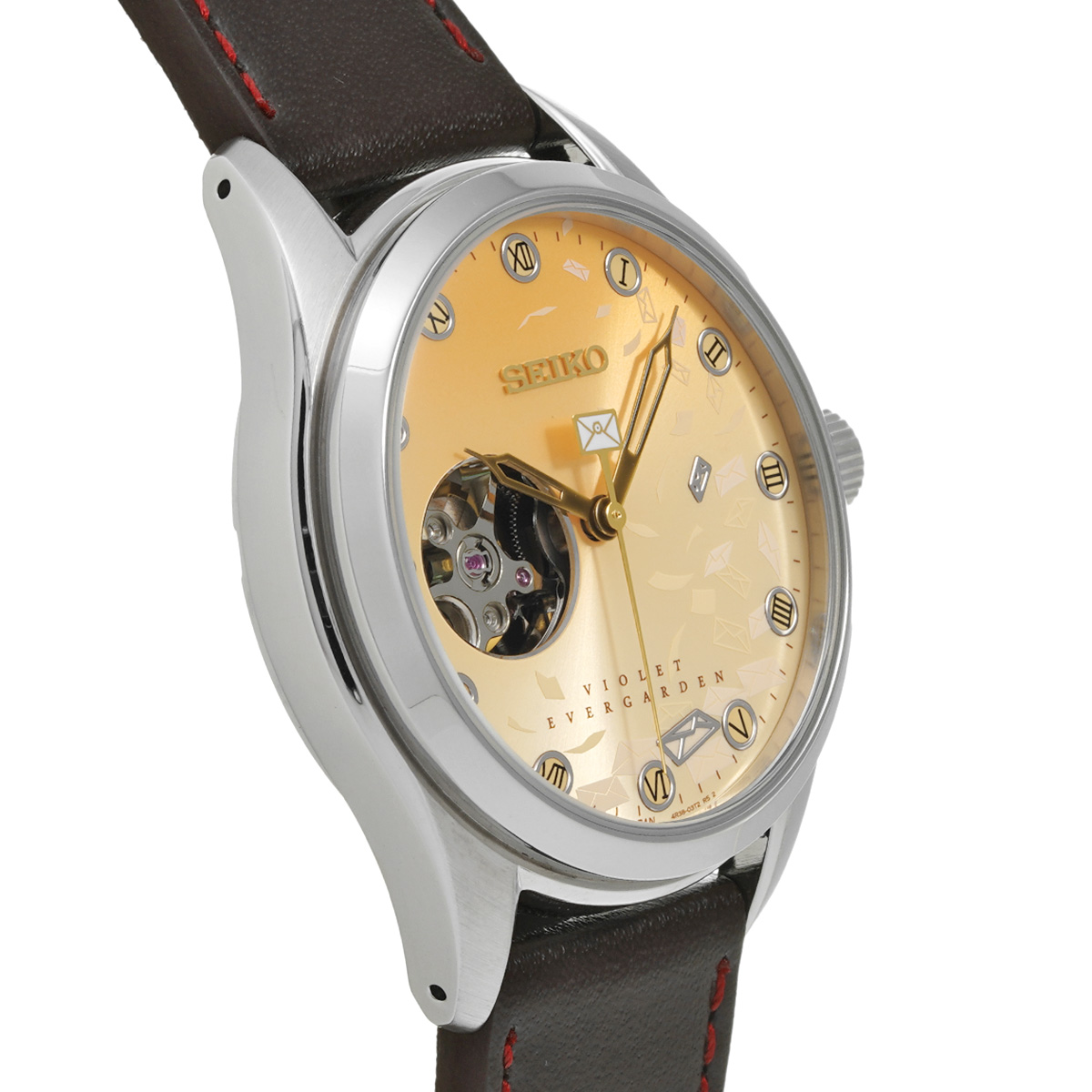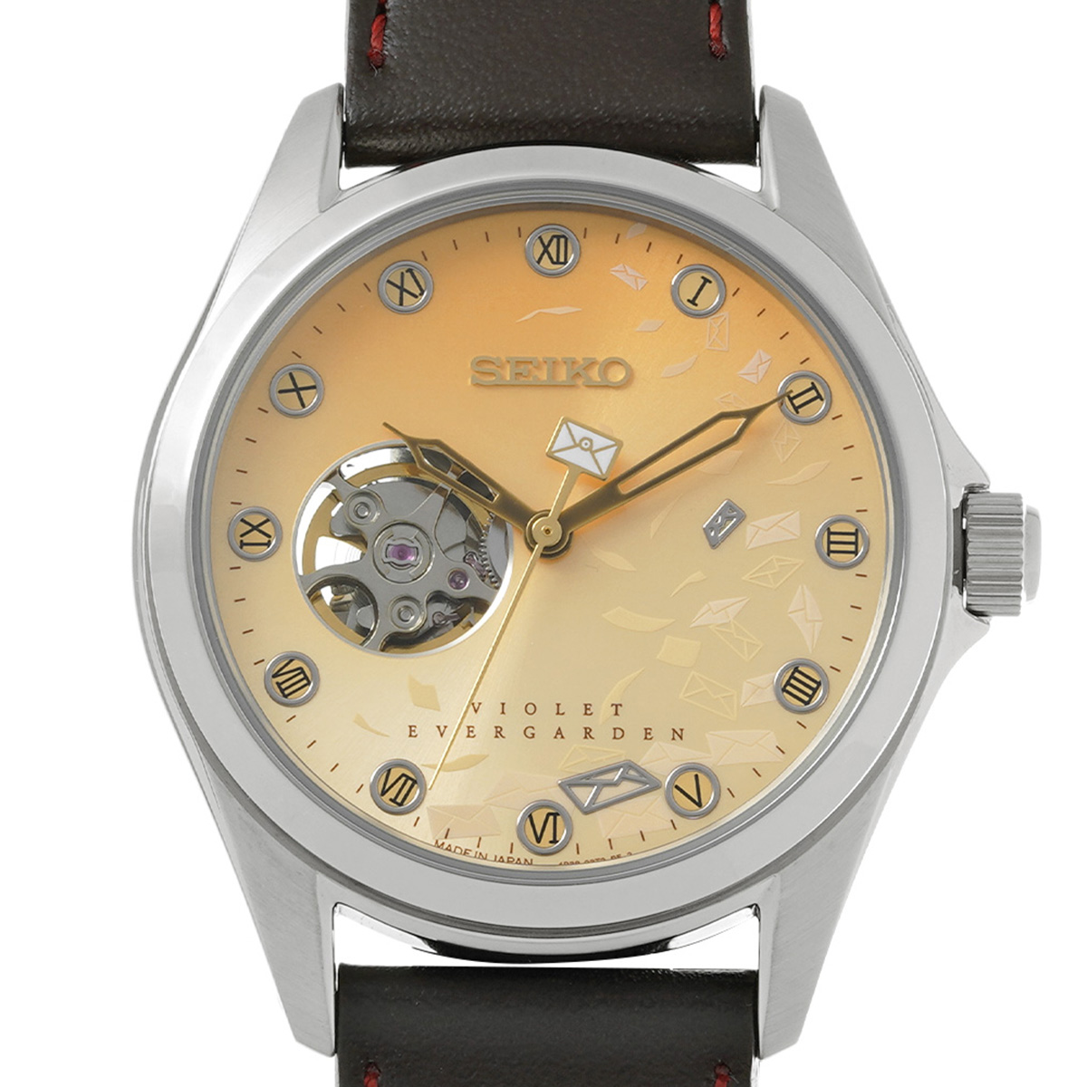 セイコー プレサージュ ヴァイオレットエヴァーガーデン 4R38-02P0 ゴールド メンズ 時計 【中古】【wristwatch】