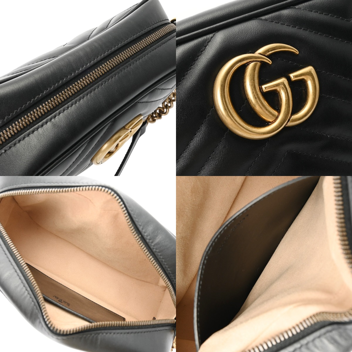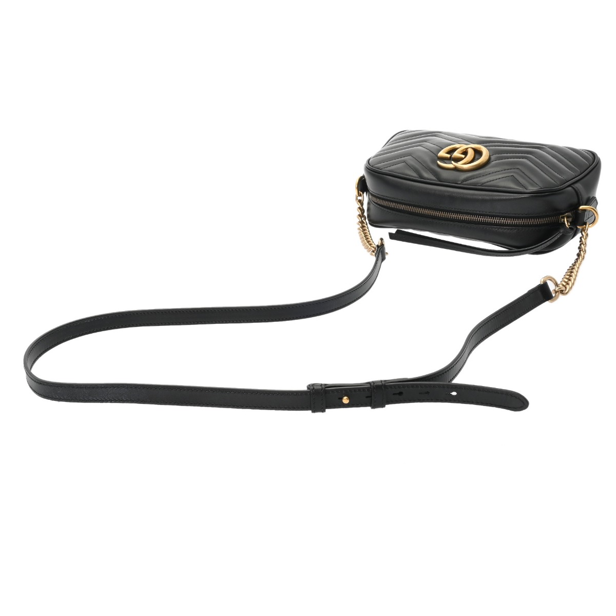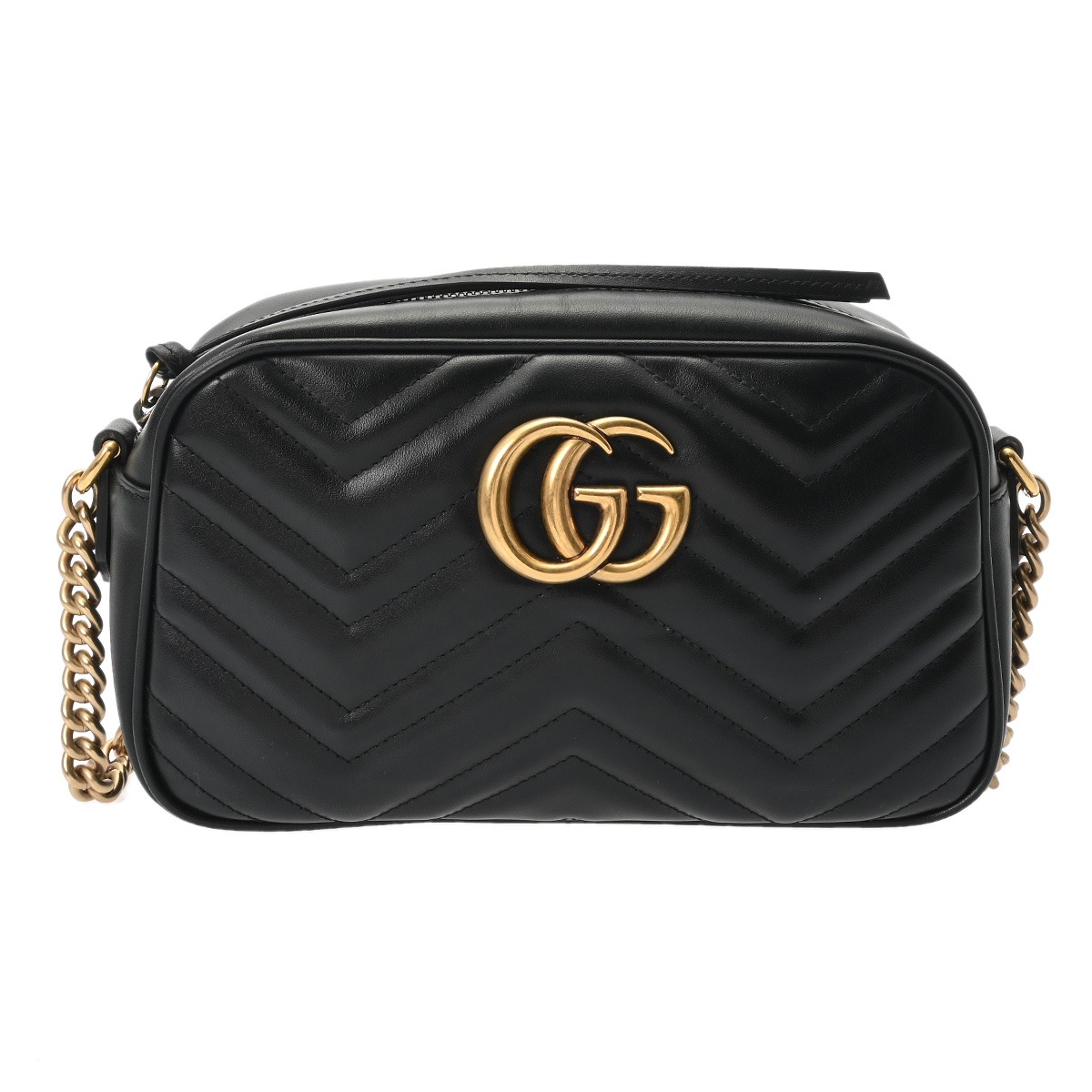 グッチ GGマーモント スモールショルダーバッグ ブラック 447632 シェブロン キルティング レザー レディース バッグ 【中古】【bag】
