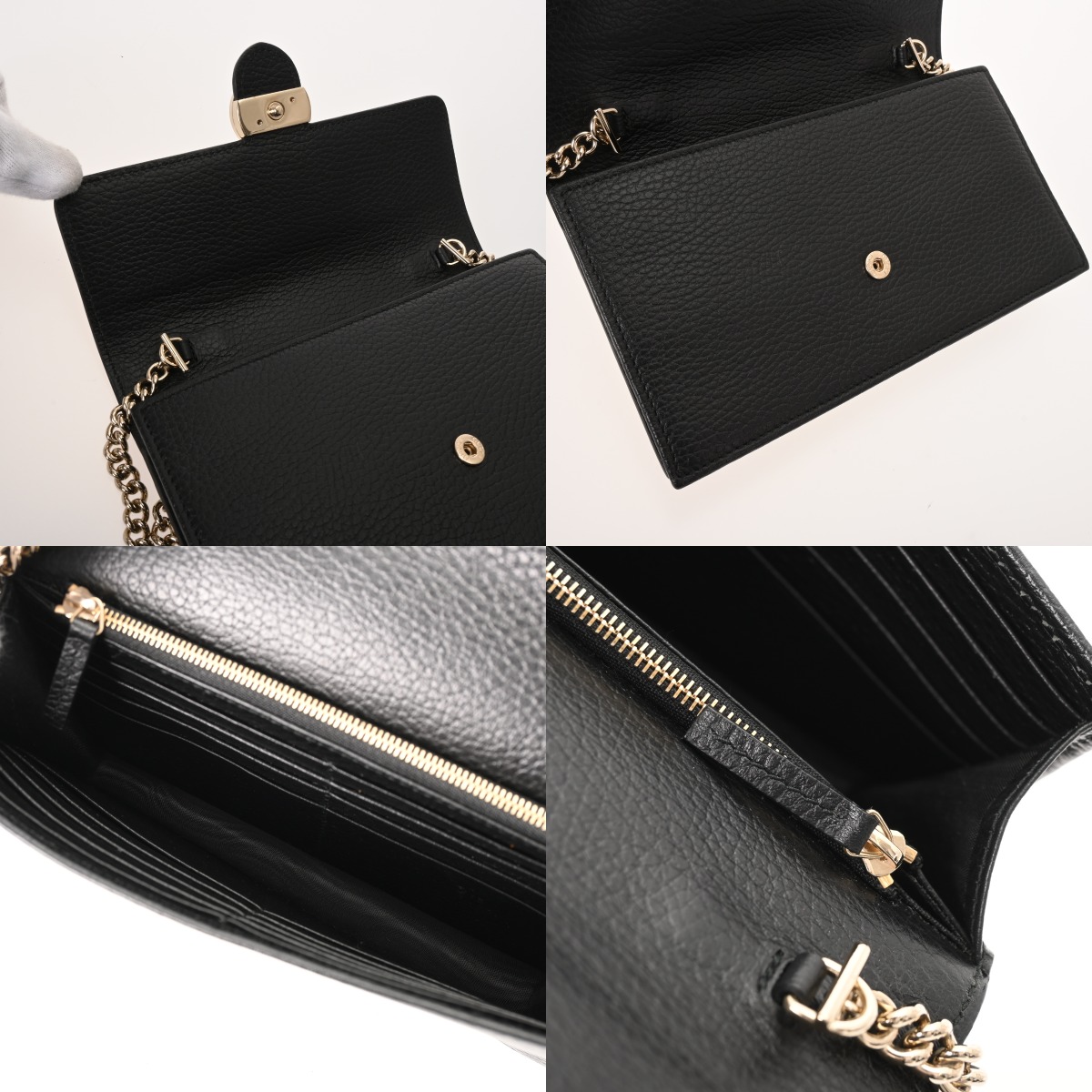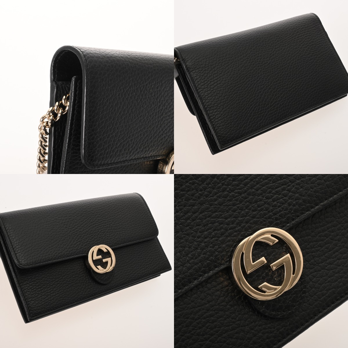 グッチ インターロッキングG チェーンウォレット ブラック 510314 480199 レザー レディース 財布 【中古】【purse】