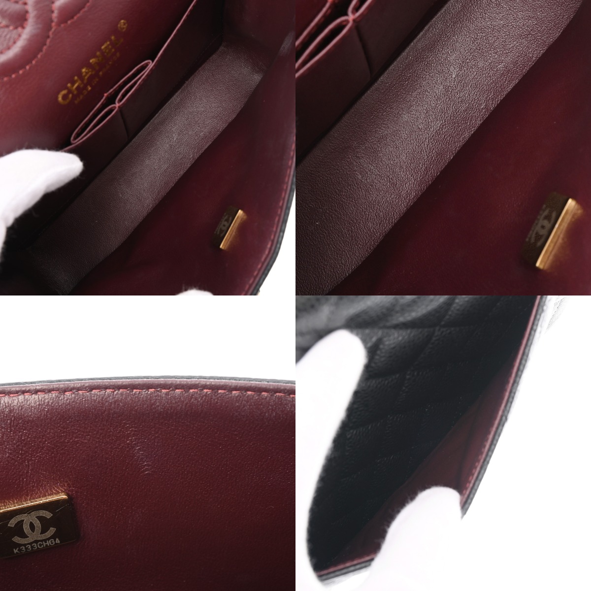 つぶれ、シワやスレ、薄汚れ、テカリ、若干押し跡、金具部分にスリキズなど少々使用感がございます。