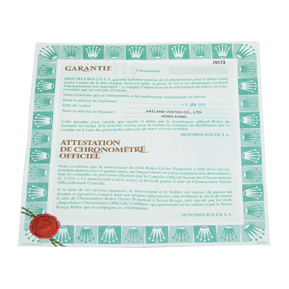 - 時計の当社保証