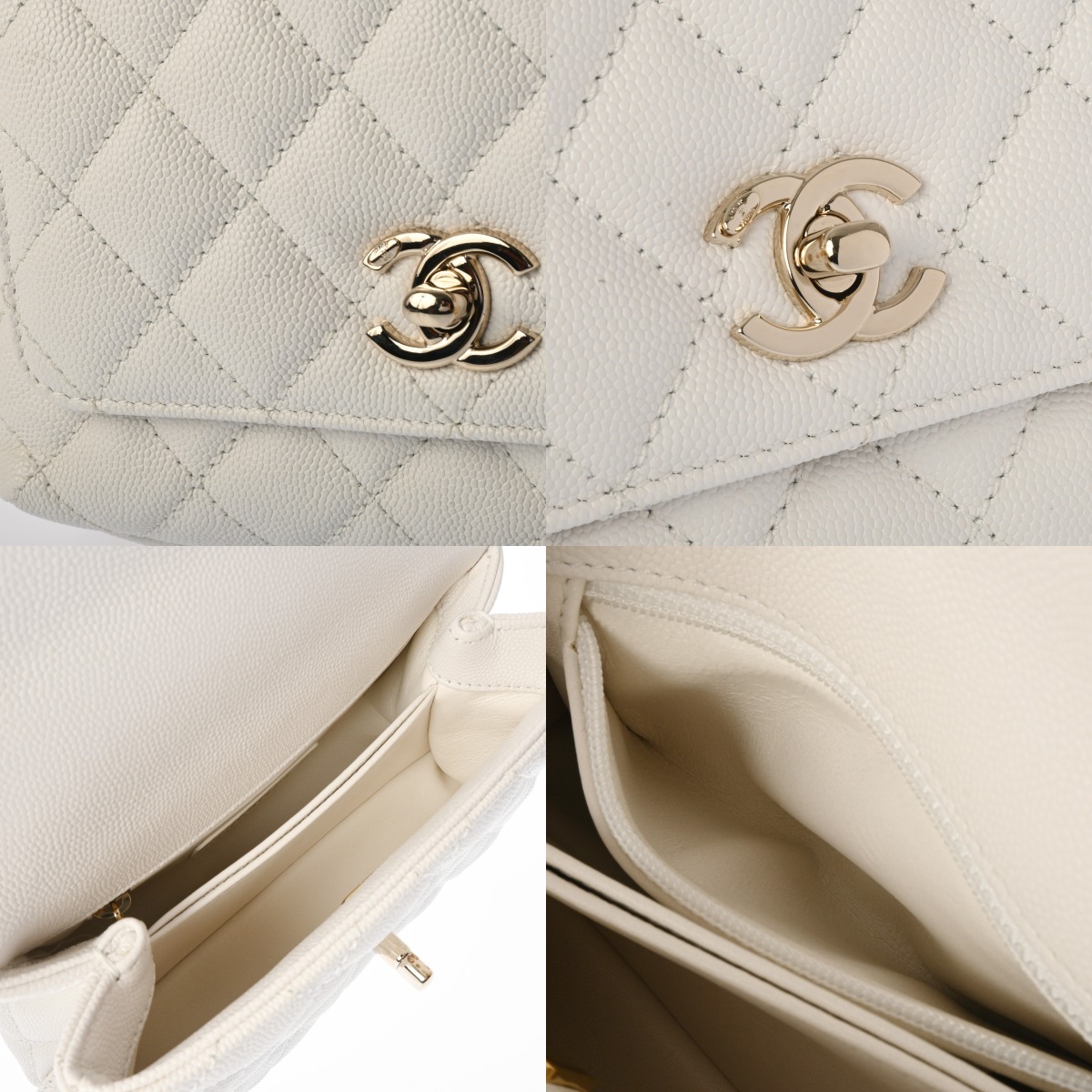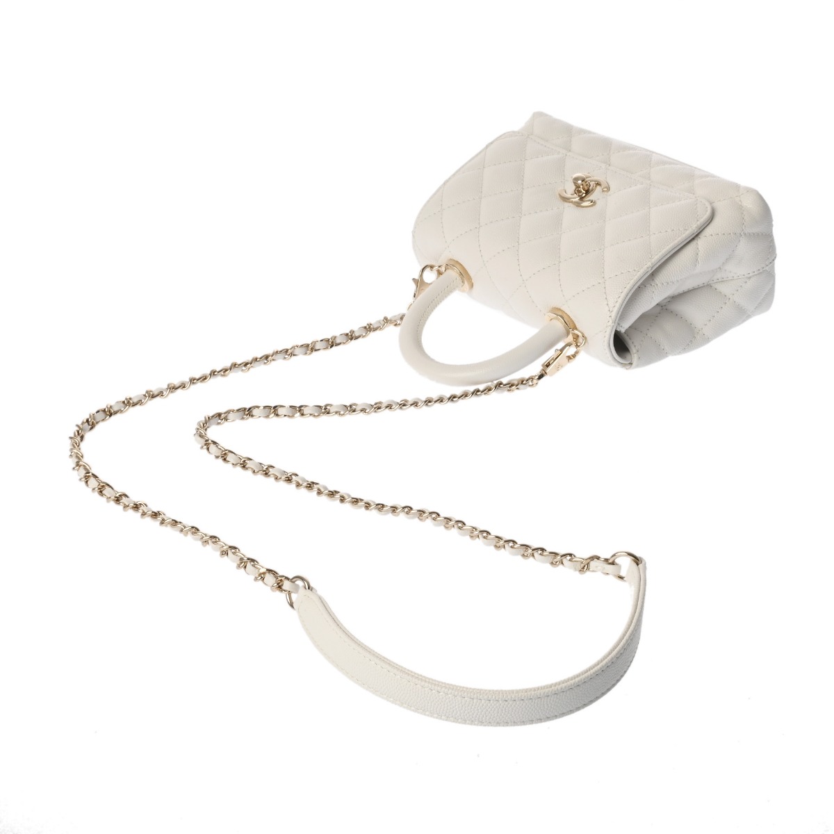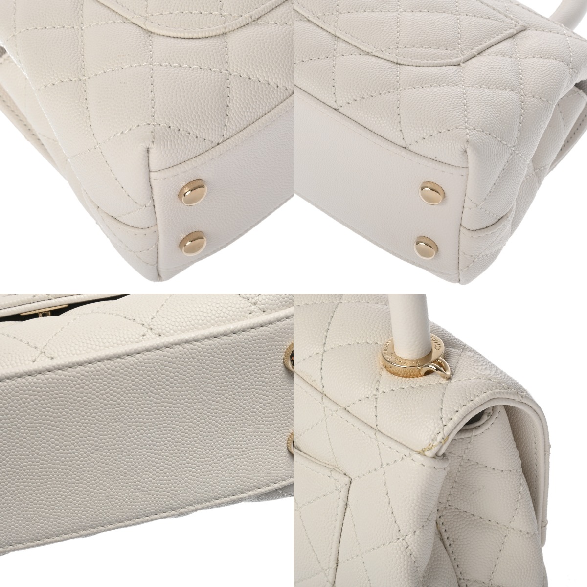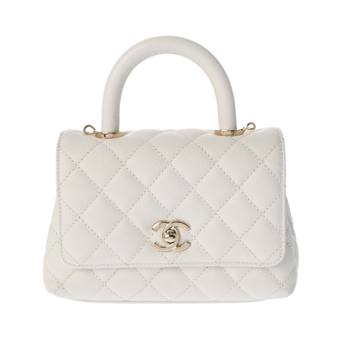 シャネル トップハンドル ミニ フラップ バッグ ホワイト AS2215 グレインドカーフスキン レディース バッグ 【中古】【bag】