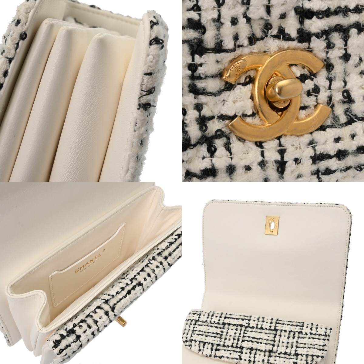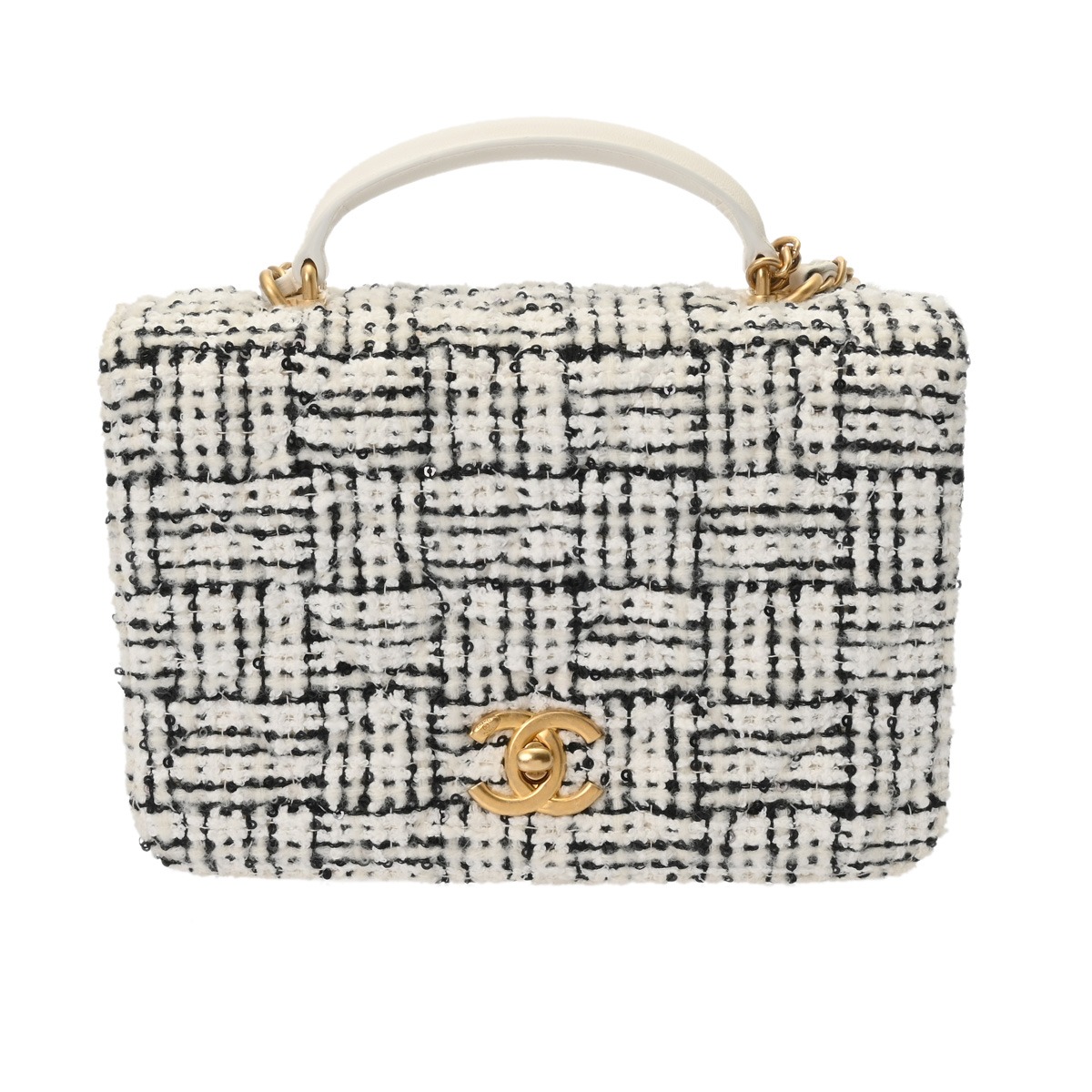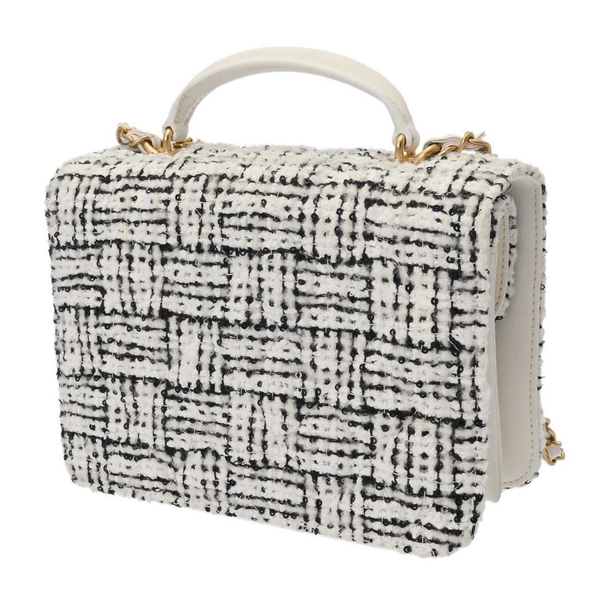 シャネル トップハンドル ミニ フラップバッグ ホワイト/ブラック AS4284 ツイード/ラムスキン レディース バッグ 【中古】【bag】