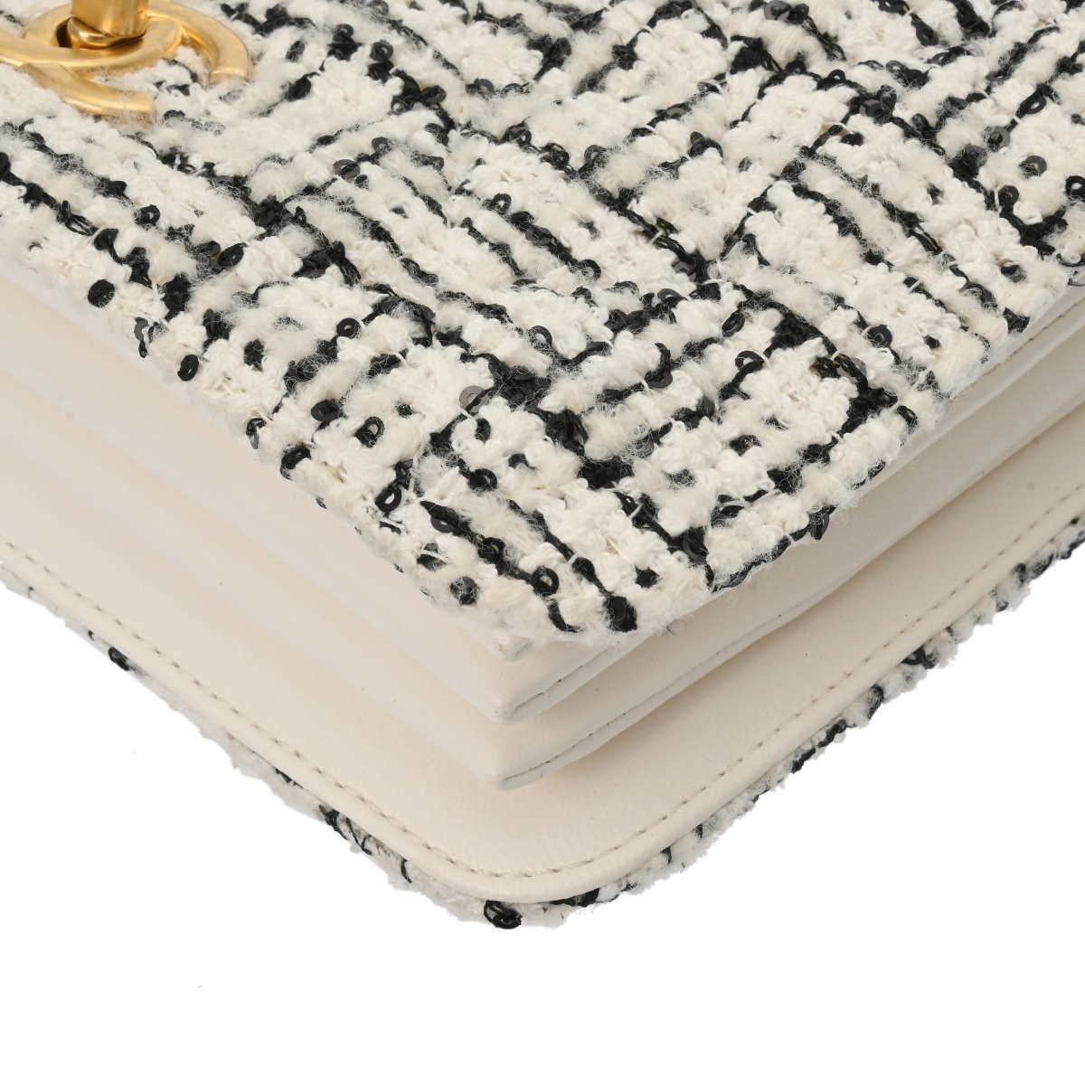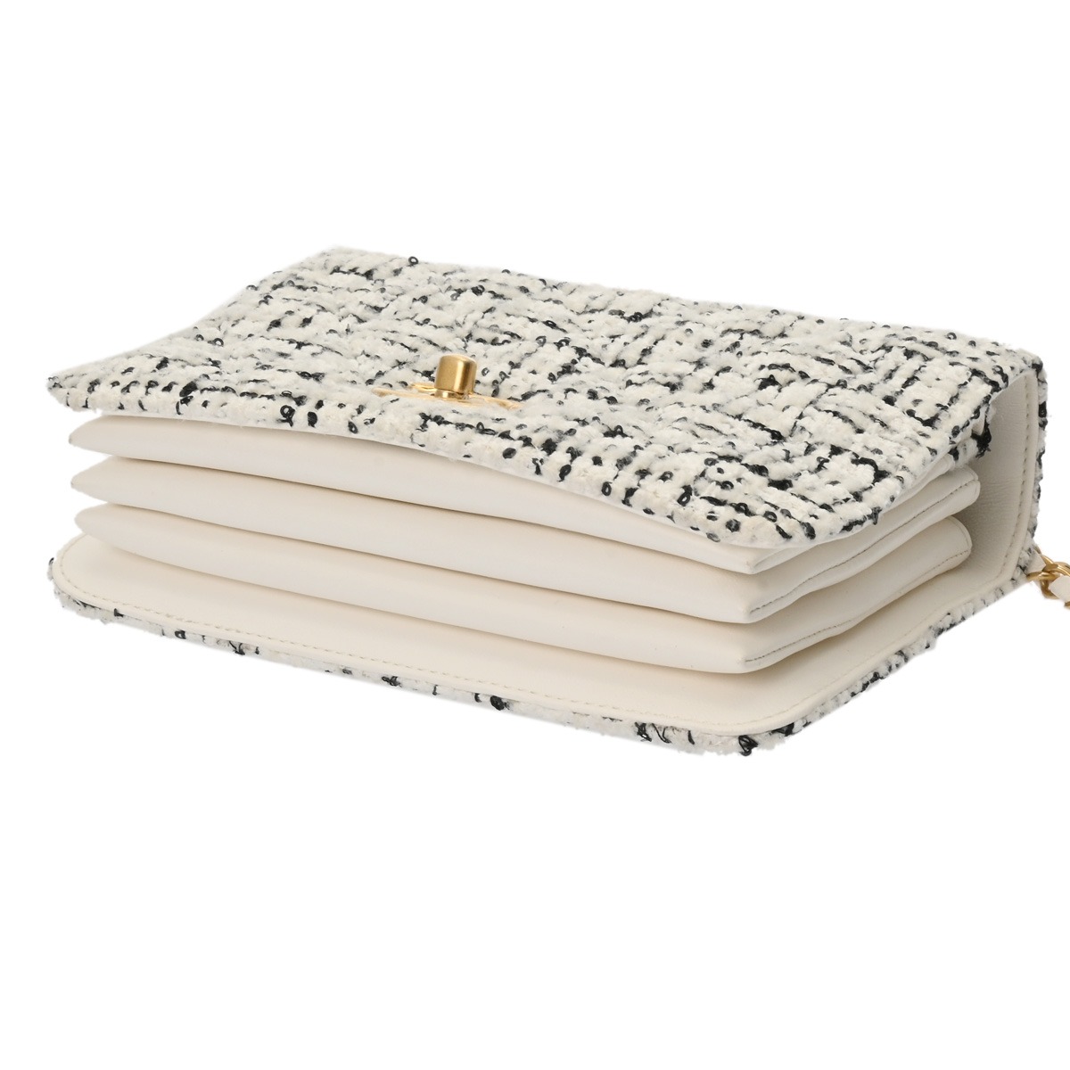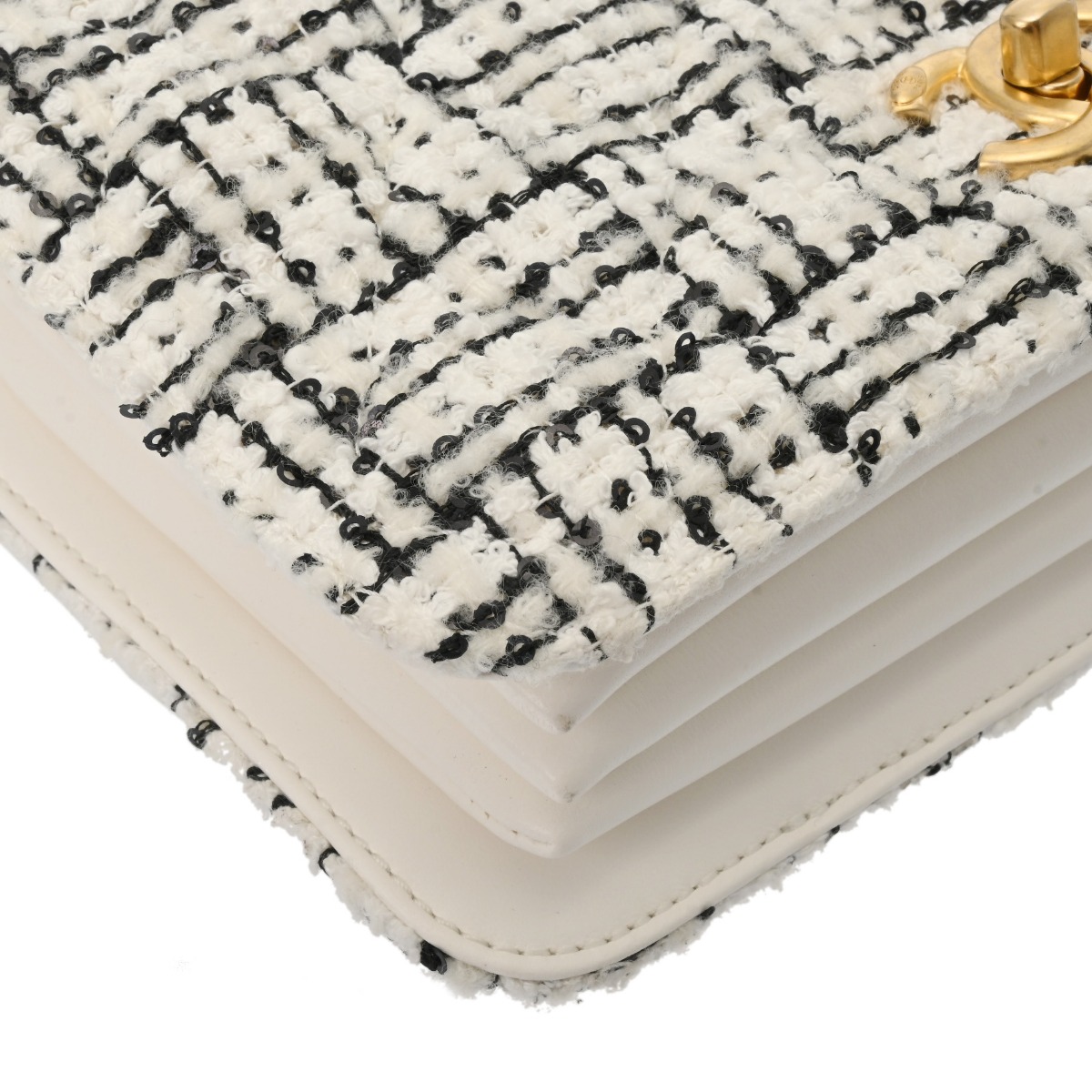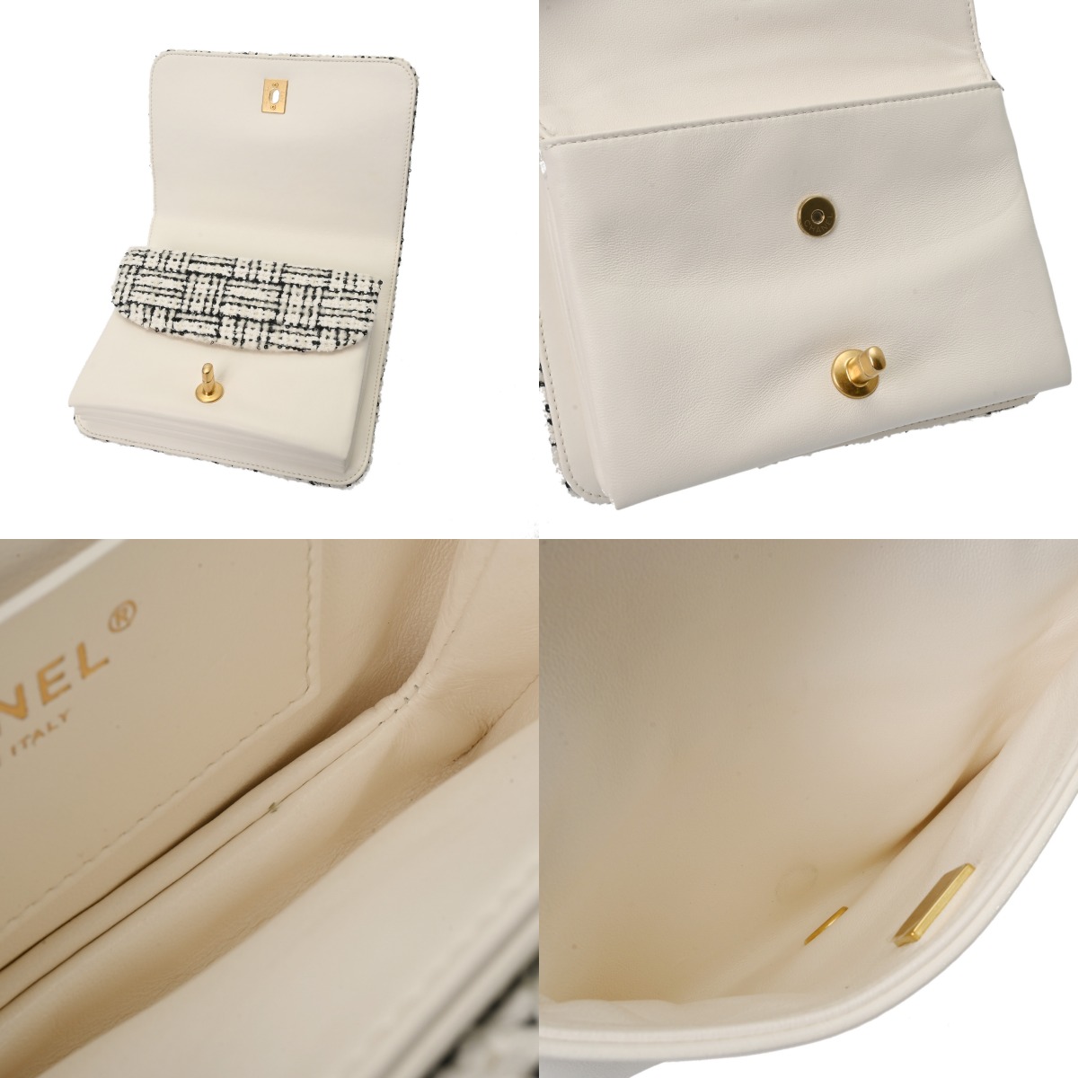 シャネル トップハンドル ミニ フラップバッグ ホワイト/ブラック AS4284 ツイード/ラムスキン レディース バッグ 【中古】【bag】