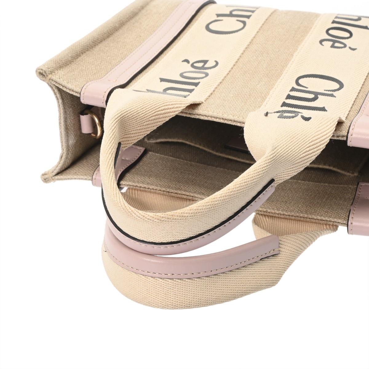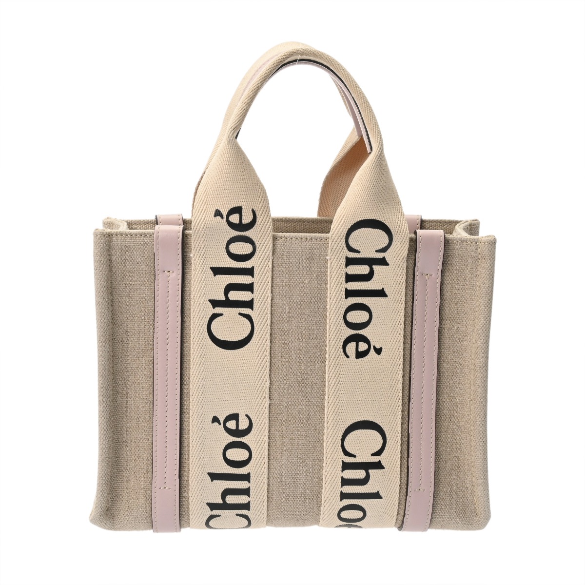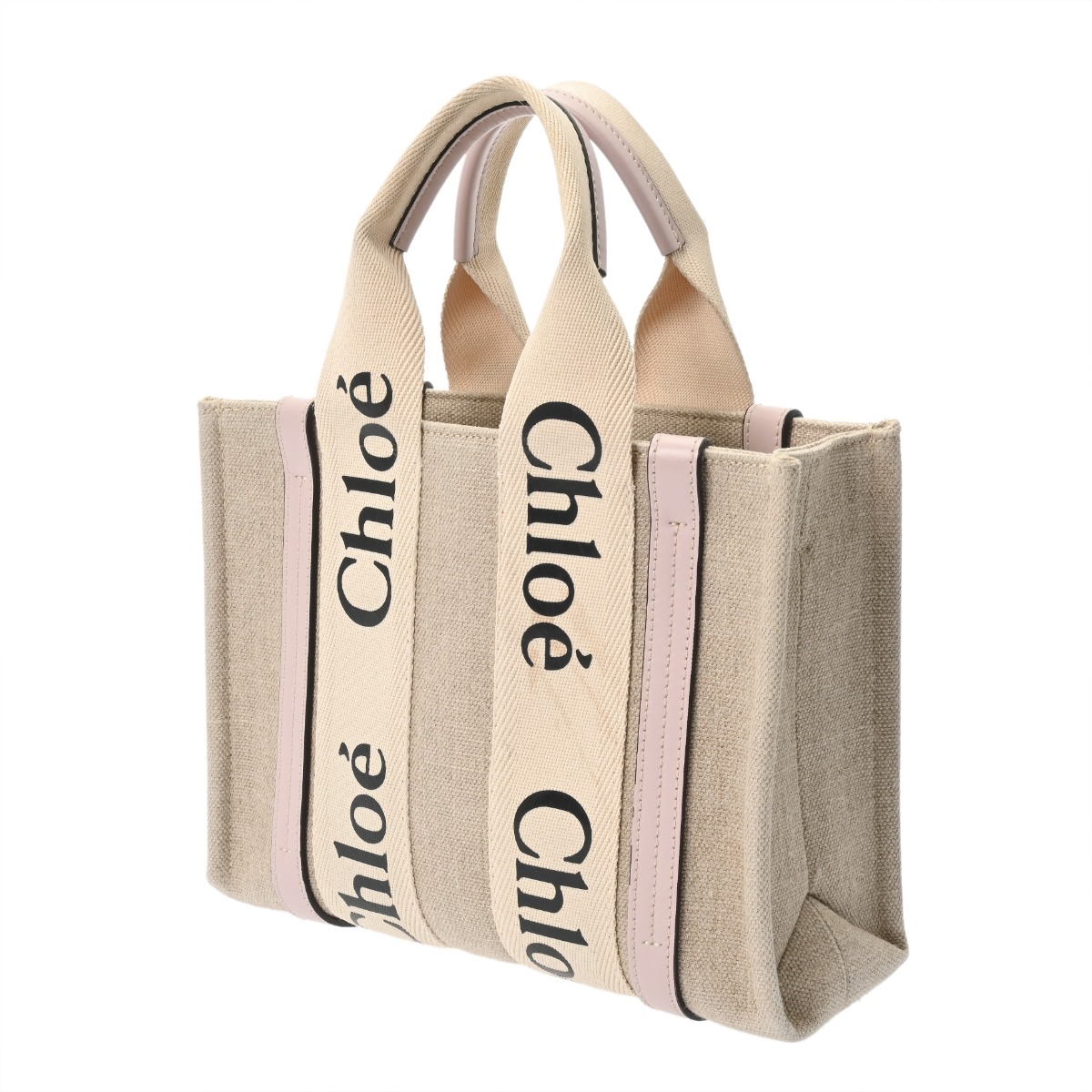 クロエ WOODY スモールトートバッグ セメント/ピンク CHC22AS397I266J5 リネンキャンバス/カーフ レディース バッグ 【中古】【bag】