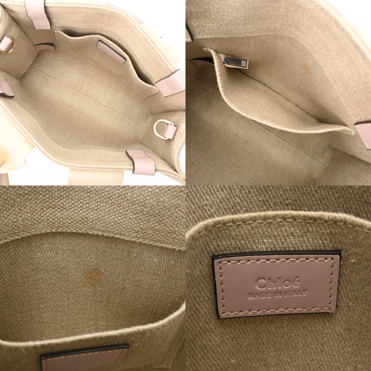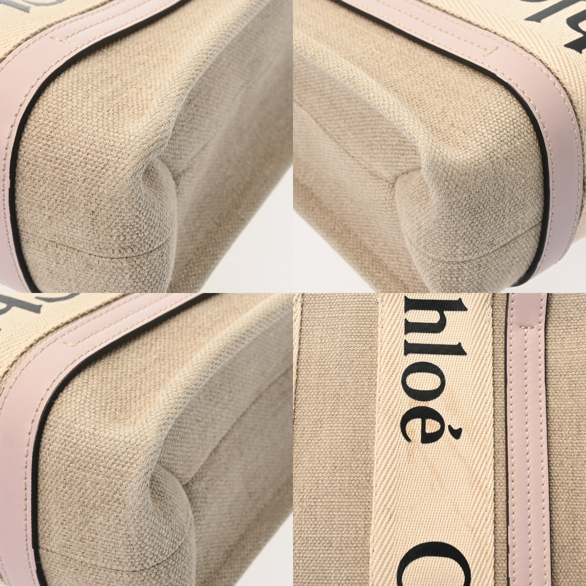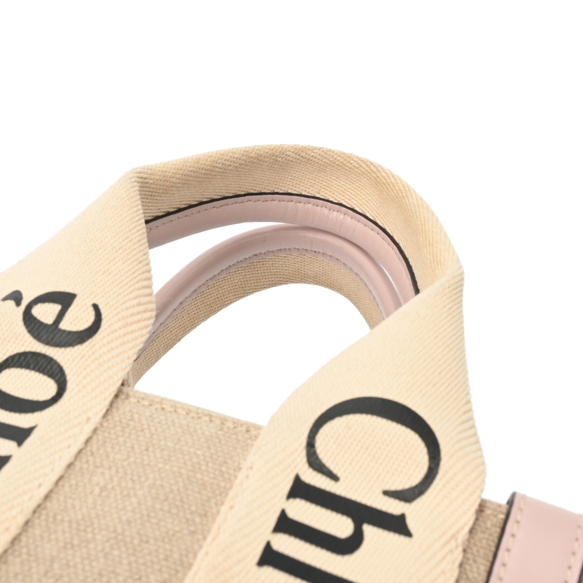 クロエ WOODY スモールトートバッグ セメント/ピンク CHC22AS397I266J5 リネンキャンバス/カーフ レディース バッグ 【中古】【bag】