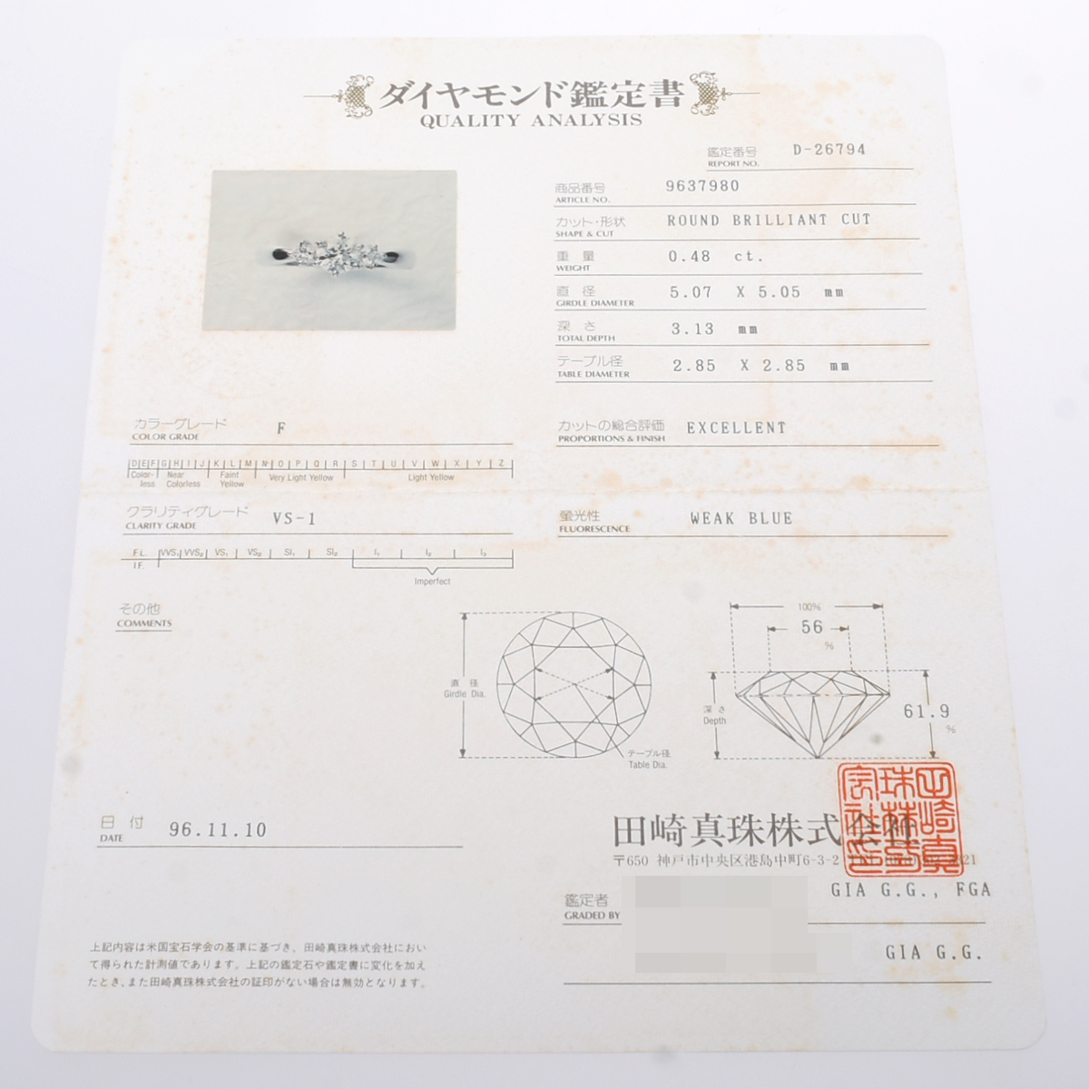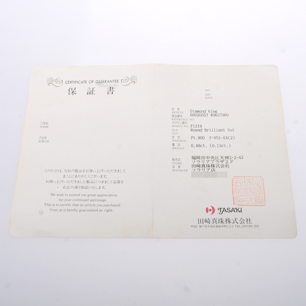 - メーカー保証書/鑑定書
