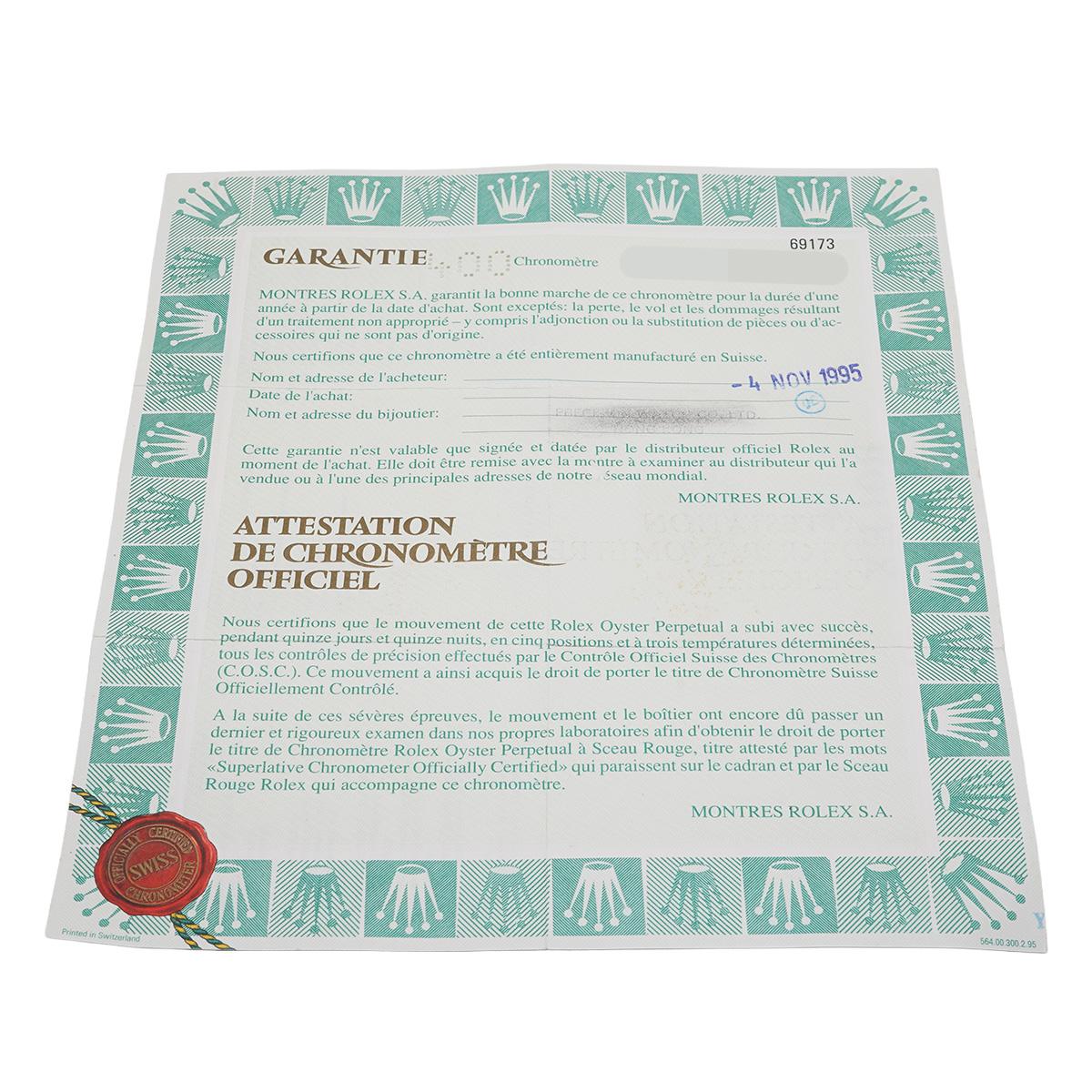 - メーカー保証書( 1995年11月海外購入)