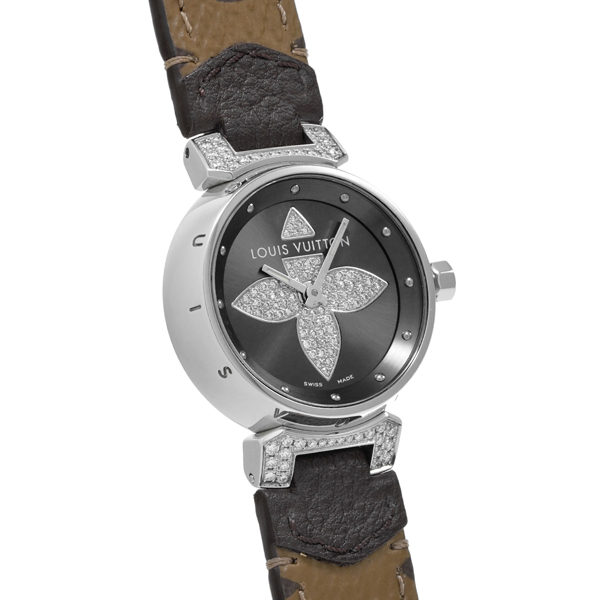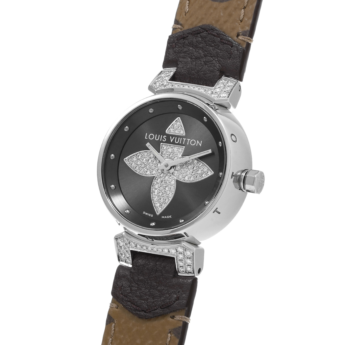 ルイ ヴィトン タンブール Q121F グレー/ダイヤモンド レディース 時計 【中古】【wristwatch】