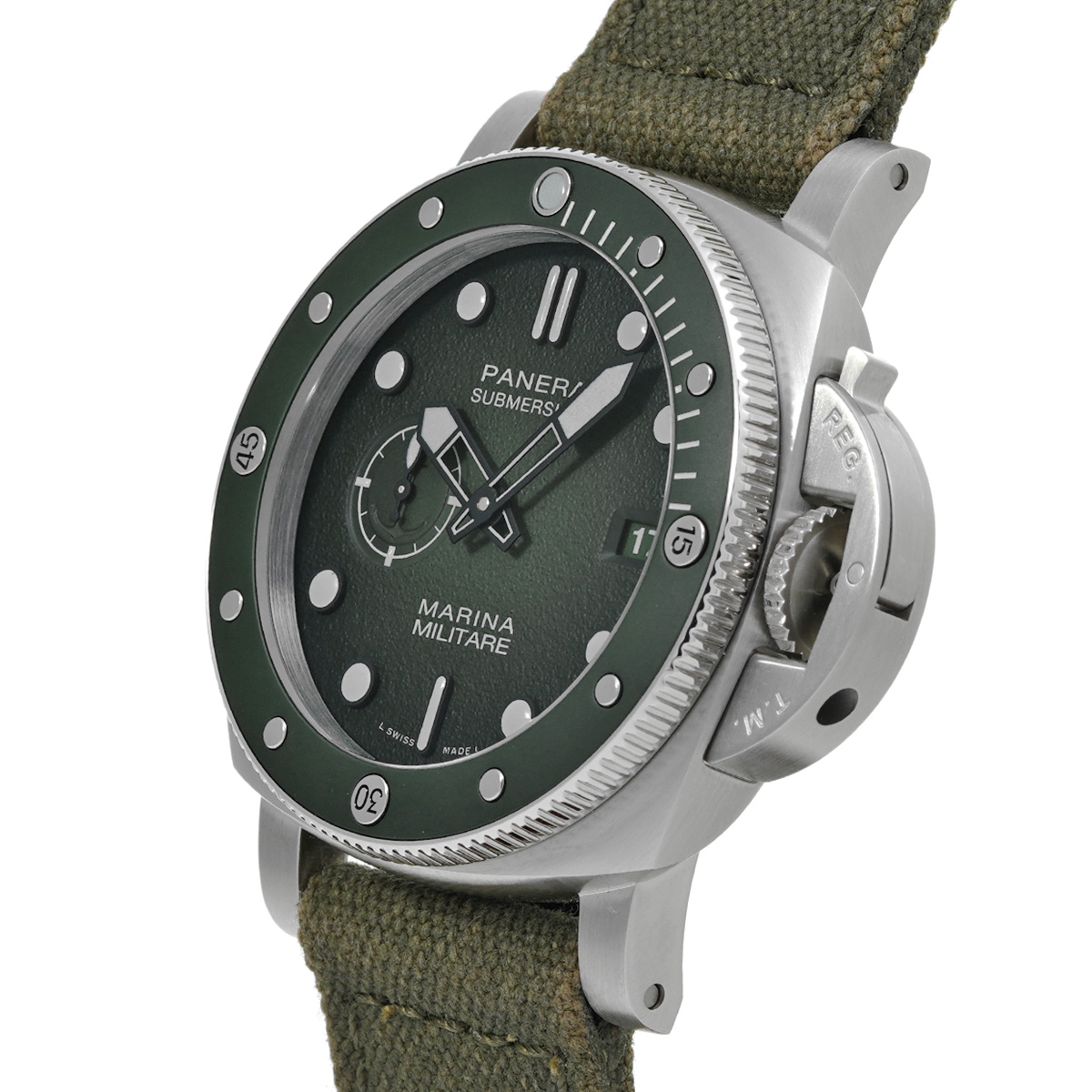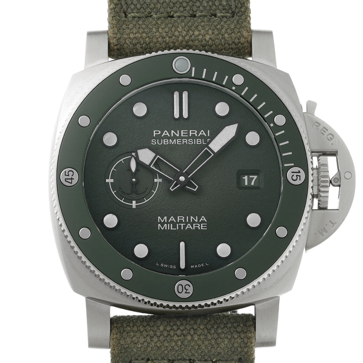 パネライ サブマーシブル マリーナ ミリターレ PAM01697 マットグリーン メンズ 時計 【中古】【wristwatch】