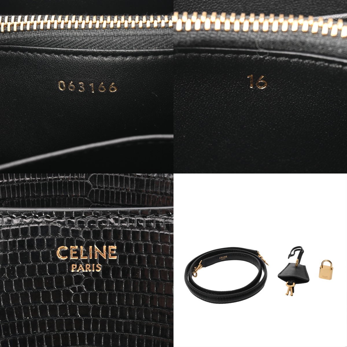 セリーヌ ミニ 16 (セーズ) ブラック 197984BF2.38NO リザード レディース バッグ 【中古】【bag】