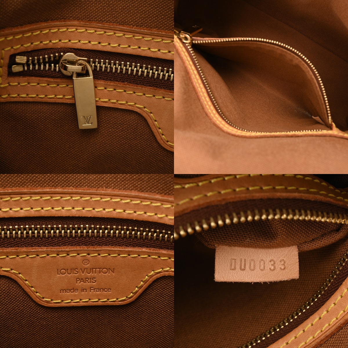 - 型崩れ、テカリ、薄汚れ、少しスレ、ヌメ革部分にシミなど使用感、金具部分にスリキズやくすみがございます。