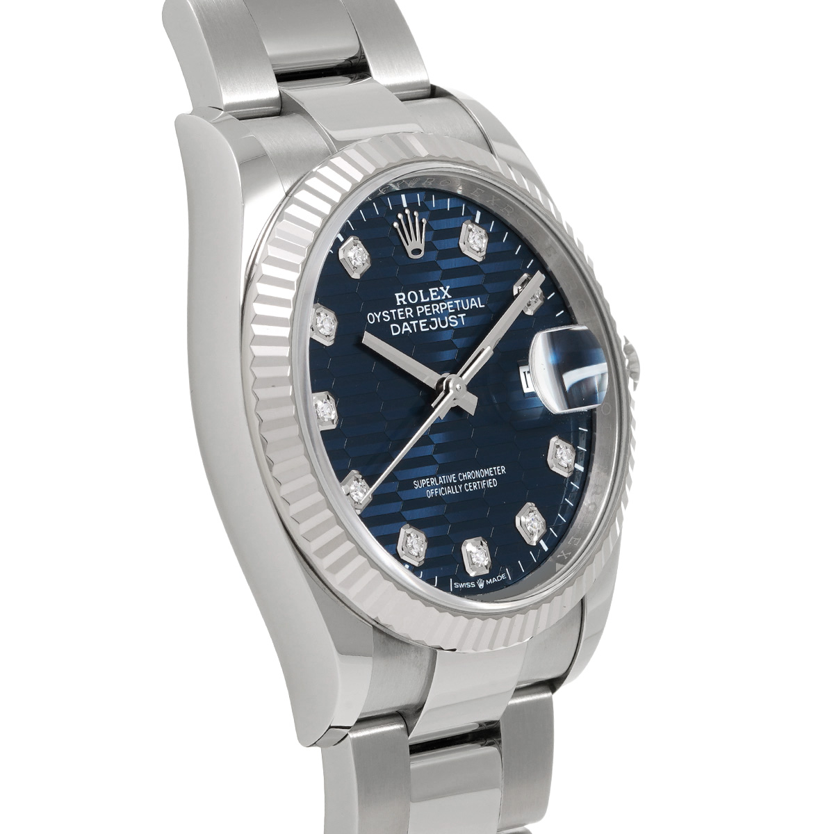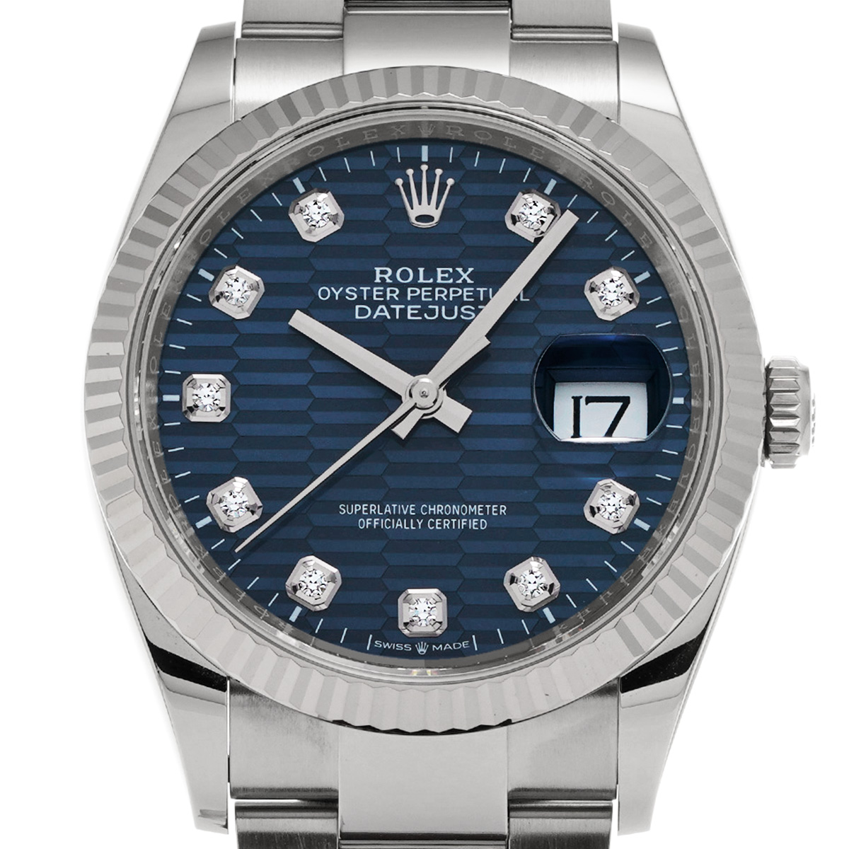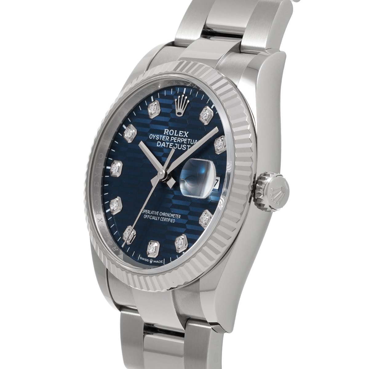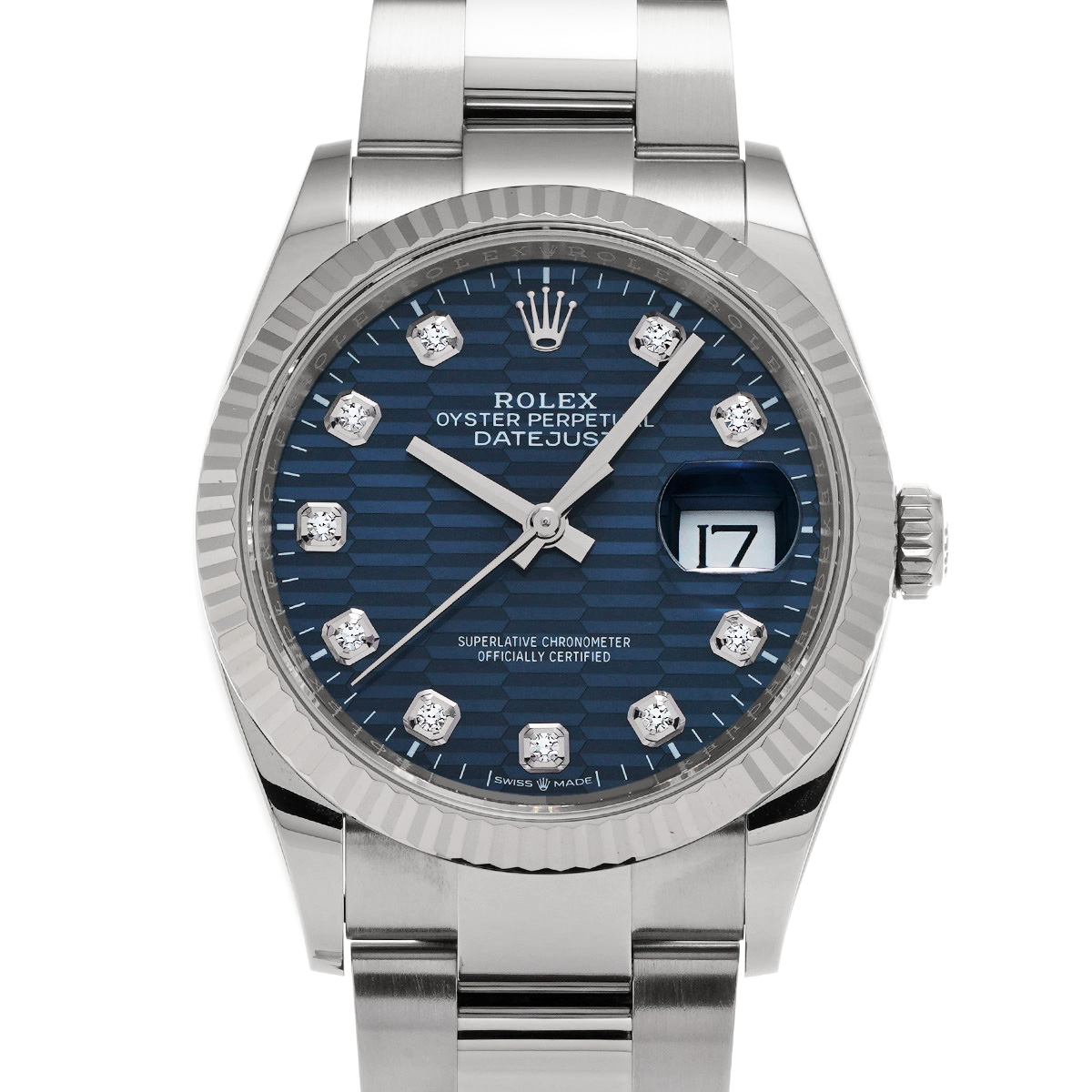ロレックス デイトジャスト 36 126234G ブライトブルー フルーテッドモチーフ/ダイヤモンド メンズ 時計 【中古】【wristwatch】