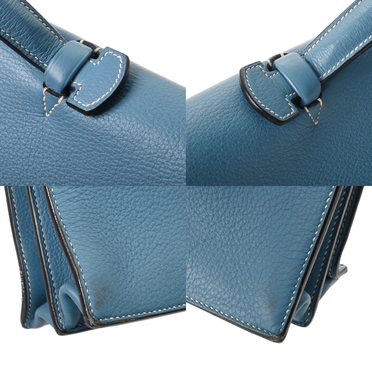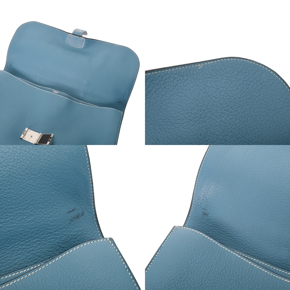 - 潰れ、ヨレ、スレ、汚れ、押し跡、コバにヒビワレ、ベルトにクセ、金具に小傷やスリキズなど使用感がございます。