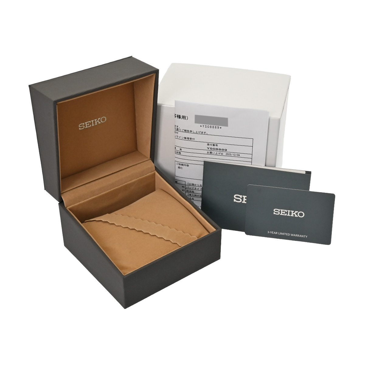 - メーカー保証書( 2025年12月国内購入) / メーカー箱(ダメージ)/冊子 / 修理明細票(2026年1月ケース洗浄他)