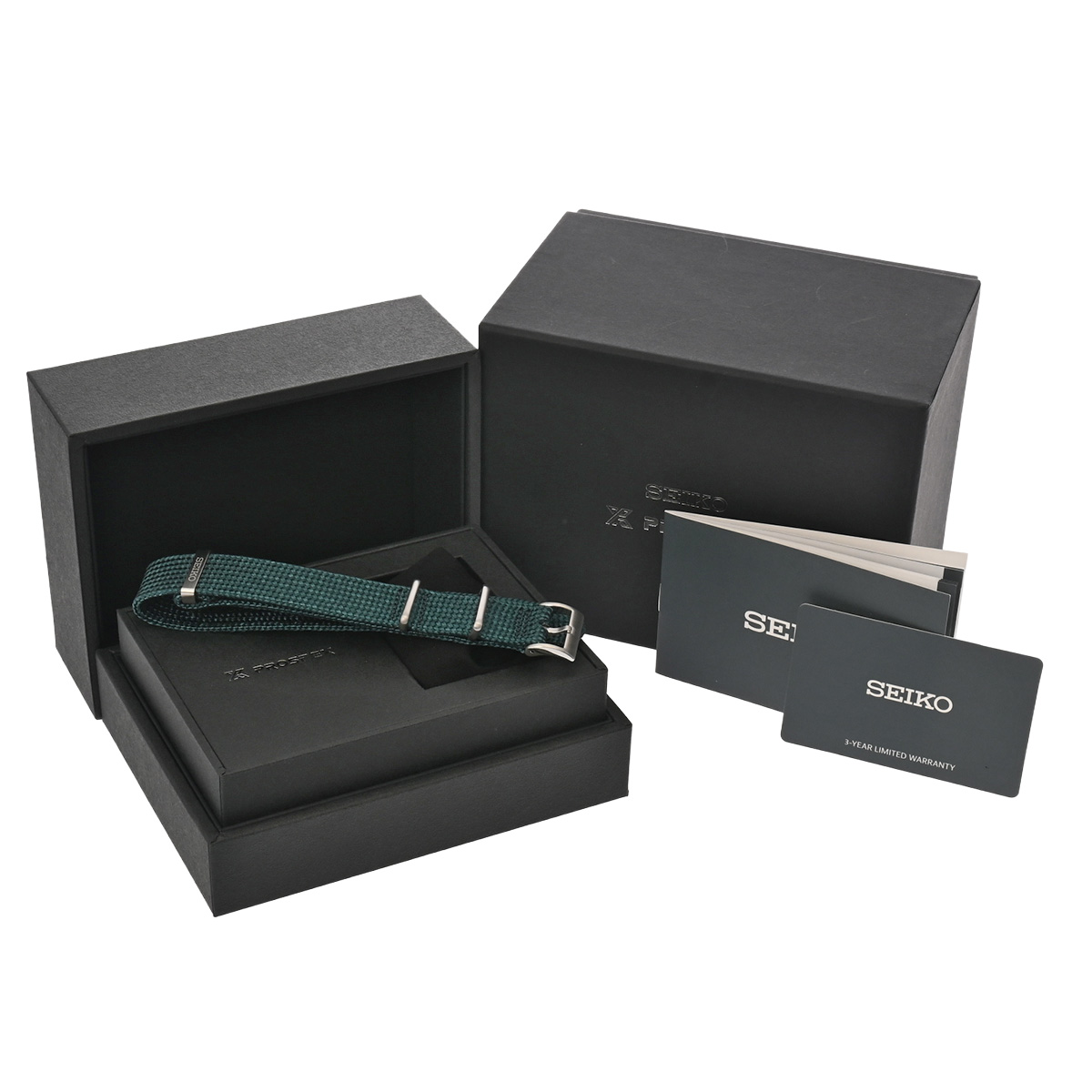 - メーカー保証書( 2025年11月国内購入) / 替えベルト( ファブリック/グリーン) / メーカー箱